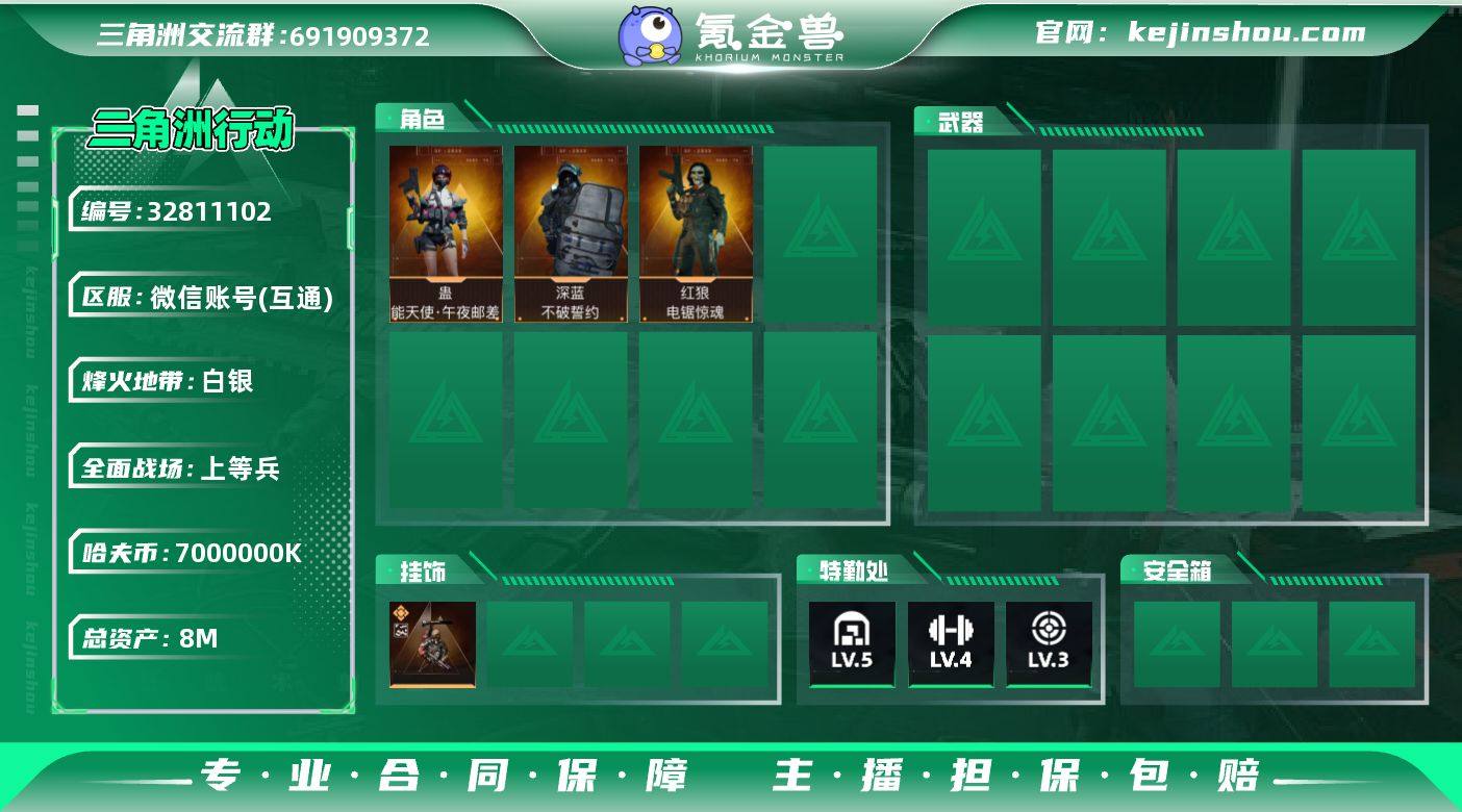 1 ✅ 最终版「卖家说」(直接全选复制) 【三角洲行动成品号 可二次实名 放心购买】 干员皮肤: ✅ 女医(蛊)能天使红皮(热门干员核心红皮) ✅ 深蓝干员金色皮肤 枪械皮肤: ✅ 捞点薯条全套捆绑包(AWM/腾龙/93R热门枪皮) ✅ 狩猎时刻全套捆绑包(M16/G3/Vector高人气枪皮) ✅ 绒花全套捆绑包(M14/.357收藏级枪皮) 装饰&资产: ✅ 4个金色挂饰 + 17个紫色挂饰,收藏感拉满 ✅ 账号满级60级,仓库8M哈夫币成品号 账号安全: ✅ 已成年账号,支持二次实名修改,账号安全无忧,可走平台全程验号 ✅ 无找回风险,换绑后直接上手,无需额外氪金 【说明】 号内所有皮肤、挂饰、捆绑包均为实装,可验号核对,诚信出号,只走氪金兽官方平台,拒绝私下交易,非诚勿扰~ 📌 补充填写小贴士 1. 「游戏账号」栏:填你的微信号/QQ号(对应你登录三角洲的账号) 2. 「游戏密码」栏:填你的微信/QQ登录密码(