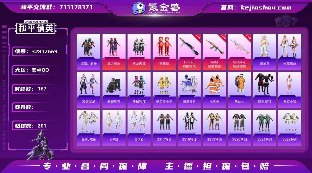 安卓 手Q-3粉装-5特效枪-0载具-1粉色飞行器-54283热力值-6王牌印记-167套装-201枪皮 【热门品类】:套装-浪漫天命,套装-深海小丑鱼,套装-小丑鱼,套装-龟仙人,套装-暗影哥特,套装-粉红小猪 【粉色套装】:粉装-星之彼岸,粉装-银龙傲海,玩偶服-猪猪侠 【粉色枪皮等级】:AKM-绿萝繁花(五级),SCAR-L-锦绣绵绵(五级),UMP45-萌骑冒险(四级),Mk14-福马献瑞(五级),DP-28-豹影疾电(五级) 【粉色枪皮】:AKM-绿萝繁花,SCAR-L-锦绣绵绵,UMP45-萌骑冒险,Mk14-福马献瑞,DP-28-豹影疾电 【粉色飞行器】:炫彩糖果飞行器 【粉色降落伞】:快乐主宰降落伞,幻影战神降落伞,百万伏特降落伞,蓝莓炮弹降落伞,环太平洋降落伞,垂柳戏鸭降落伞,忍者神龟降落伞,幻彩电音降落伞,绯穹魔姬降落伞,炫彩糖果降落伞 【稀有套装】:套装-龟仙人,套装-炫彩糖果,角色-魂电,套装-马上有钱,套装-迅捷龙虾,套装-星渊小夜曲,套装-云朵鹅,套装-雪绒豹,套装-朱霞炽焰,套装-凌霄紫焰,玩偶服-懒羊羊,套装-雨过天青,套装-红釉青花,角色-幽雨猫猫,角色-皓月伶影 【稀有枪皮】:AUG-冰晶雪宝,AKM-影袭,AKM-王牌投手,AKM-环太平洋,AKM-生命誓言,AKM-破晓战魂,AKM-虎虎生威,AK...