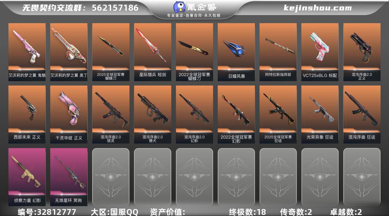 【PTWW3268】终极*18/传奇*2/卓越*2/皮肤*70/等级*116/段位:铂金/2025全球冠军赛/2022全球冠军赛/混沌序曲//2.0套装/幻棱/炼狱/维斯/暮蝶/钛狐/壹决/铁臂/捷风/雷兹/幽影/不死鸟/贤者/猎枭/蝰蛇/芮娜/奇乐/尚勃勒/霓虹/斯凯/夜露/星礈/K/O/海神/盖可/黑梦/钢锁/2025全球冠军赛 蝴蝶刀/蝴蝶刀-2022全球冠军赛/近战武器-碎心裂刃/混沌链枷/日耀风暴/阿特拉斯指挥部/星际猎兵 短剑/2025全球冠军赛 狂徒/狂徒-混沌序曲/狂徒-光荣异象/幻影-2022全球冠军赛/幻影-混沌序曲2.0/幻影-侦察力量/獠犬-混沌序曲2.0/冥驹-无垠星环/奥丁-艾沃莉的梦之翼/骇灵-混沌序曲2.0/标配-VCT25xBLG/正义-千灵华绽/正义-西部未来/正义-混沌序曲2.0/鬼魅-艾沃莉的梦之翼/正义的化身 卡面/代号红色 卡面/新兵报到 卡面/V契约 卡面/无畏契约 卡面/暴走萝莉 喷漆/胜利属于无畏契约 喷漆/GLHF 喷漆/无畏契约 喷漆/聚合之力 挂饰/无畏契约 纪念币 挂饰