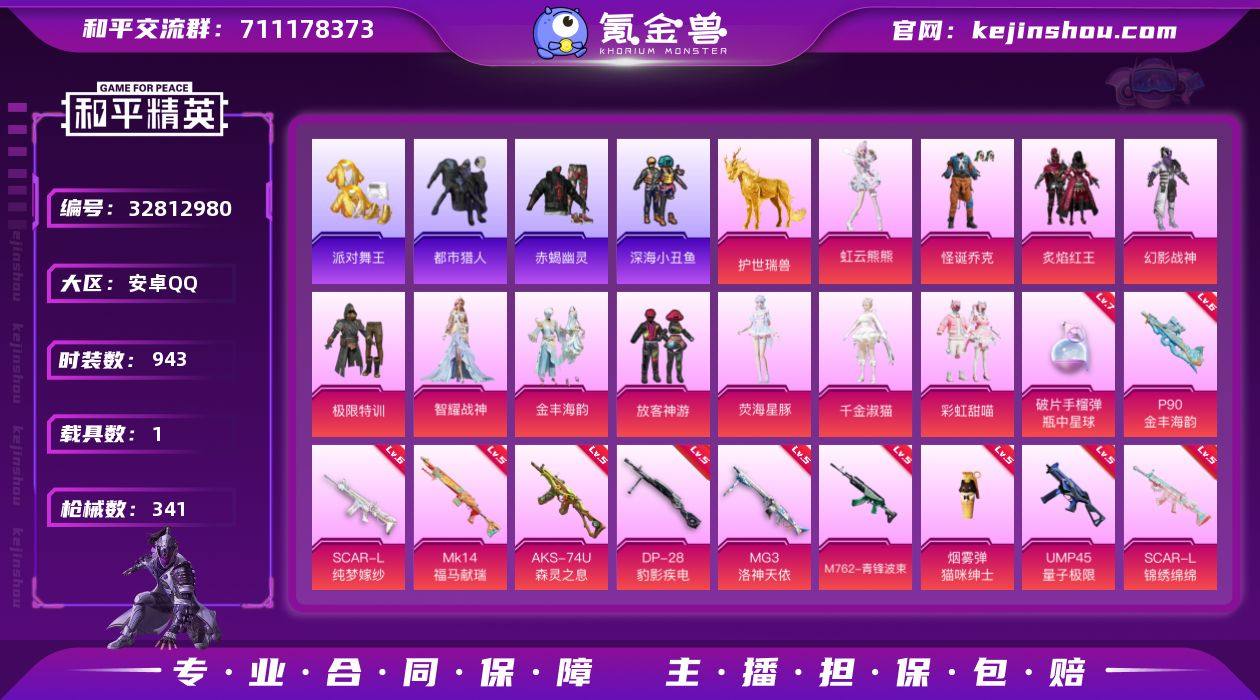 极品男神号 和平:现有2000点券 枪械升级徽章1个 人气礼物有一个价值1000点券礼物 王者:v8皮肤362皮肤128英雄 满铭文 一颗没换的荣耀水晶 有一款小兵皮肤 万战马可