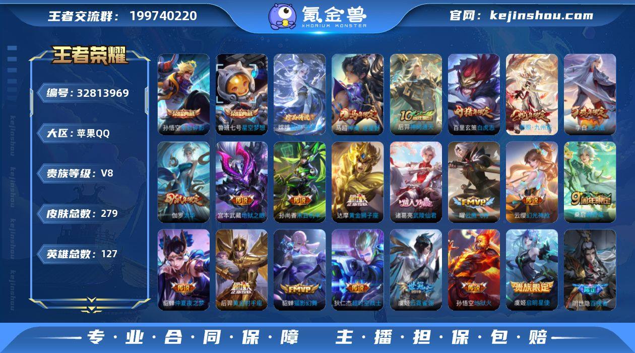 【WZSA1518】贵族8/皮肤279/典藏2/传说20/史诗82/英雄127/全息碎影/星空梦想/器灵·落星盏/马超神骥逐星野/神树通天/愿照·九州拓/幻光神枪/鸣野蒿/启明星使/云鹰飞将/太华/猫影幻舞/云霓雀翎/黄金狮子座/白虎志/黄金射手座/武陵仙君/仲夏夜之梦/凤求凰/末日机甲-孙尚香/地狱之眼/地狱火/超时空战士-狄仁杰/狰(s8)/阴阳师/凯尔特女王(s7)/皇家上将/引擎之心/时之彼端/白昼王子/蔷薇恋人/狮舞东方/蜃楼王(s4)/迷踪丽影/王者之锤/妖精王(s5)/炼金王(s6)/重明(s11)/猎兽之王/赤莲之焰/朔风刀(s17)/游园惊梦/烛龙(s10)/天狼征服者/穷奇(s12)/蓝屏警告/暗影游猎/魔术师/万华元夜(s22)/沙漠行僧(s26)/海滩派对/醍醐杖(s20)/演武夺筹(s23)/一生所爱/夺宝奇兵/逐梦之影/飞衡/驯魔猎人/瑞麟志/至尊宝/大圣娶亲/御旌(s15)/银河之约/云中旅人(s29)/神迹守卫-钟馗/驱傩正仪(s24)/遇见飞天/朔望之晖/冰霜恋舞曲/单词大作战/黎明之约/奇迹圣诞/饕餮(s9)/原初探秘者(s21)/青龙志/玄武志/千军破阵(s25)/原初追遂者/朱雀志/混沌棋(s18)/星空之诺/大漠名商(s28)/疑决卦(s19)/李小龙/御狮(s13)/御霄(s14)/纤云弄巧/御銮(s16)/西部大镖客-猪八戒/梁祝/狂想玩偶喵/女武神/梅西/龙武盛年/噬灭天穹(s37)...