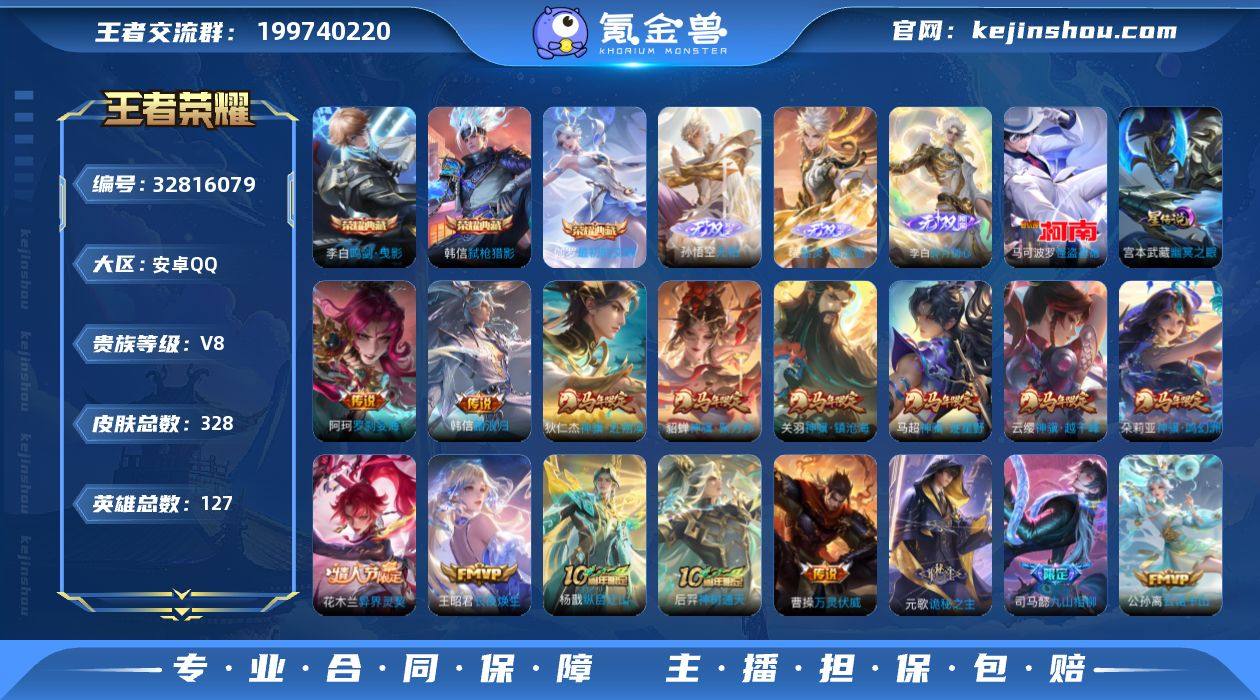 可二次【特价出售/店主推荐】安卓Q-V8-至尊星耀III段位-127英雄-328皮肤-3典藏皮肤-3无双-1珍品传说-1星传说-38传说-100史诗 【英雄全皮】:元歌全皮,孙权全皮,敖隐全皮,司空震全皮,空空儿全皮,影全皮 【荣耀典藏】:李白鸣剑曳影,韩信弑枪猎影,伽罗最初的交响 【无双皮肤】:孙悟空无相,曜器灵螭龙剑,李白碎月剑心 【珍品传说】:马可波罗怪盗基德 【传说皮肤】:阿轲罗刹妄海,韩信踏浪归,云缨神骥越千峰,关羽神骥镇沧海,朵莉亚神骥鸣幻洲,狄仁杰神骥赴朔漠,貂蝉神骥聚万邦,马超神骥逐星野,花木兰异界灵契,王昭君长夜焕生,杨戬纵目迁山,后羿神树通天,曹操万灵伏威,元歌诡秘之主,司马懿九山相柳,公孙离云诺千山,司空震愿照山河定,女娲愿照千秋盛,妲己愿照众生和,澜愿照九州拓,蔡文姬愿照福禄聚,虞姬愿照岁时盈,云缨幻光神枪,桑启鸣野蒿,澜逐花归海,孙悟空齐天大圣,李信山海炽霜斩,马可波罗深海之息,王昭君乞巧织情,周瑜音你心动,铠绛天战甲,镜炽阳神光,虞姬启明星使,曜云鹰飞将,貂蝉猫影幻舞,达摩黄金狮子座,梦奇胖达荣荣,宫本武藏地狱之眼 【限定皮肤】:蔡文姬夏日便利店,大乔绒语心约,虞姬夏日便利店,姜子牙天穹之誓,杨...
