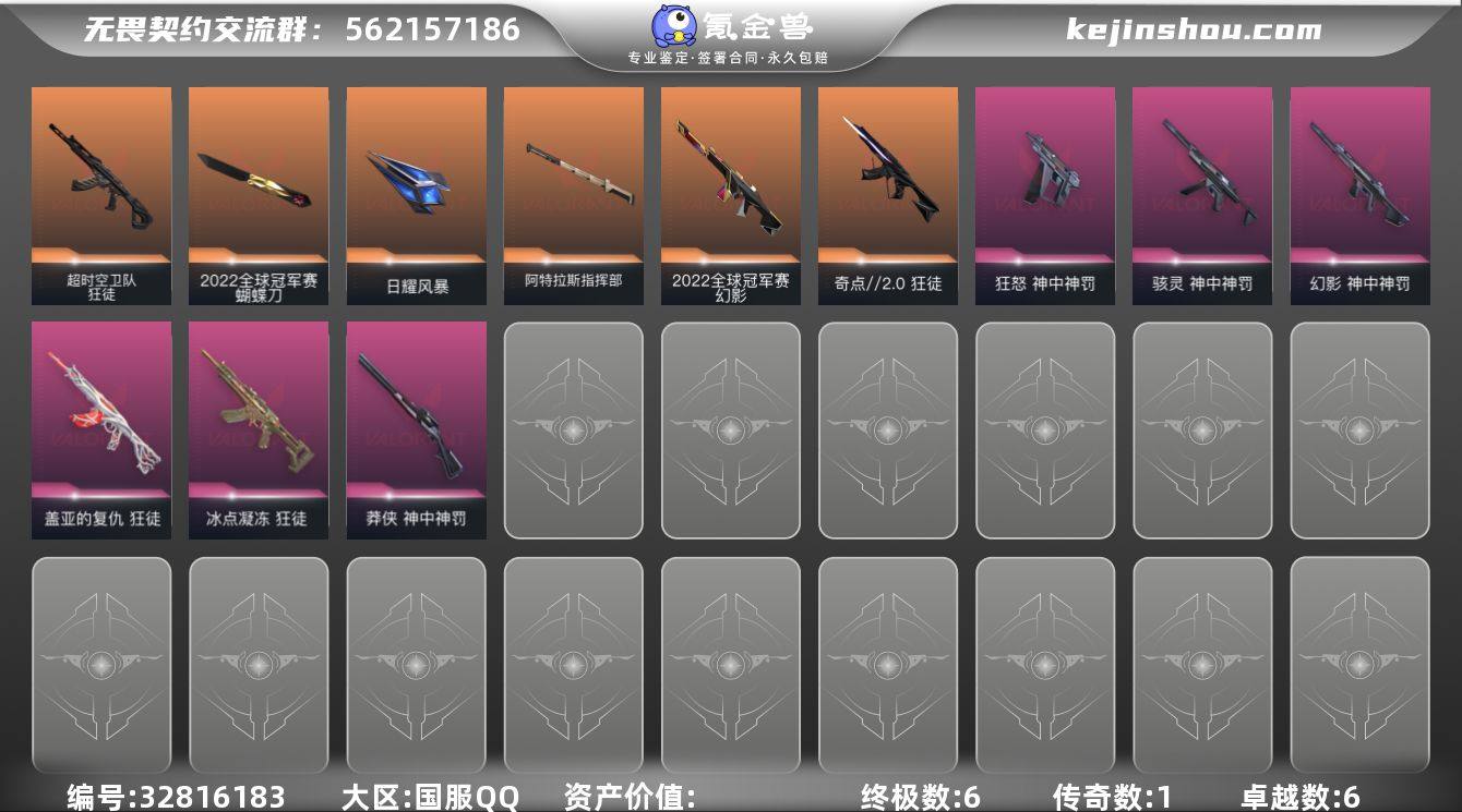 【PTWW3342】终极*6/传奇*1/卓越*6/皮肤*39/等级*111/段位:黑铁/2022全球冠军赛/神中神罚套装/幻棱/炼狱/维斯/暮蝶/钛狐/壹决/铁臂/捷风/雷兹/幽影/不死鸟/贤者/猎枭/芮娜/霓虹/夜露/K/O/盖可/黑梦/蝴蝶刀-2022全球冠军赛/神之刃/日耀风暴/阿特拉斯指挥部/狂徒-奇点//2.0/狂徒-超时空卫队/狂徒-冰点凝冻/狂徒-盖亚的复仇/幻影-2022全球冠军赛/幻影-神中神罚/莽侠-神中神罚/骇灵-神中神罚/狂怒-神中神罚/无畏契约:暮蝶 卡面/Clutch 卡面/无畏契约GO!第一卷:芮娜 卡面/无畏契约GO!第一卷:零 卡面/《双城之战》金克丝 卡面/别冒尖 卡面/黑影先生的咖啡! 卡面/代号红色 卡面/新兵报到 卡面/V契约 卡面/无畏契约 卡面/伤心心 喷漆/蛋糕还是爆能器? 喷漆/买装还是存钱 喷漆/胜利属于无畏契约 喷漆/GLHF 喷漆/无畏契约 喷漆/炼狱雪糕 挂饰/天外飞客 挂饰/海豹的认可 挂饰/无畏契约 纪念币 挂饰
