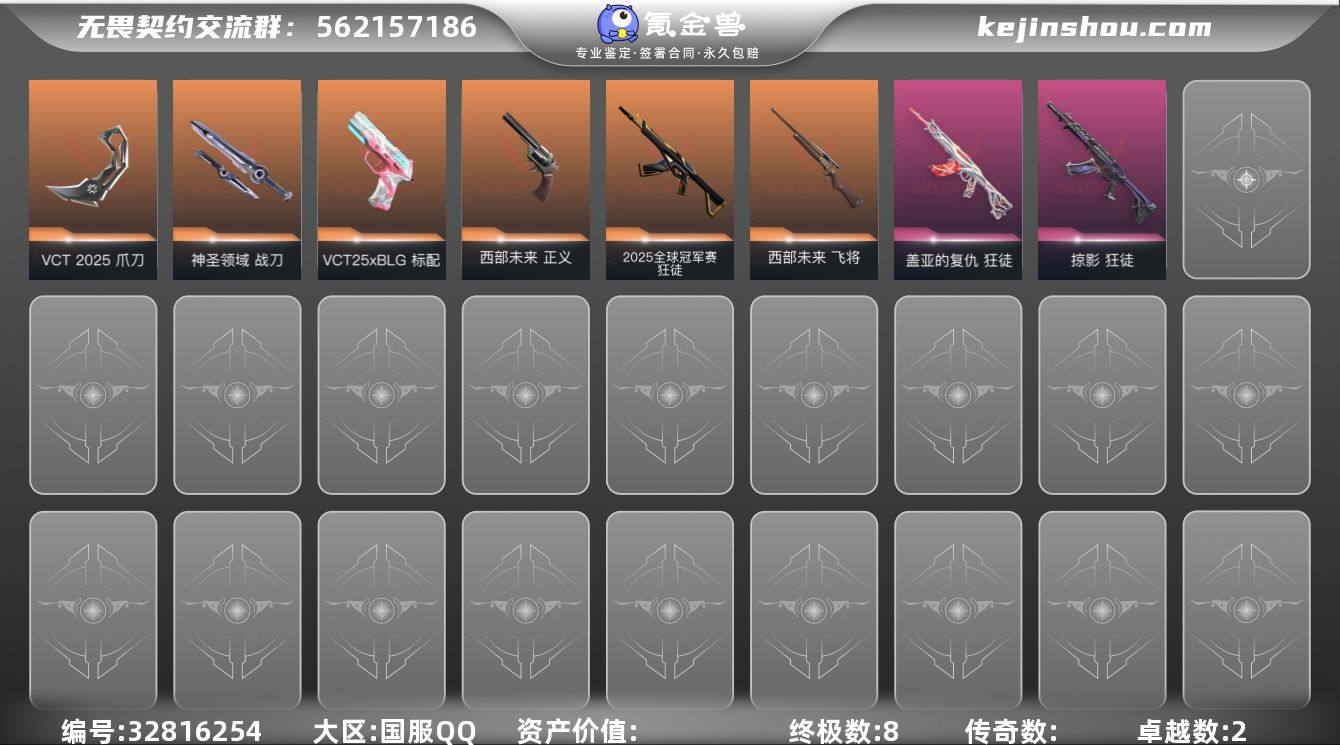 【PTWW3203】终极*8/卓越*2/皮肤*29/等级*102/段位:黄金/VCT 2025赛季礼包/幻棱/炼狱/暮蝶/捷风/不死鸟/贤者/猎枭/芮娜/霓虹/黑梦/VCT 2025 爪刀/威龙之刃/鬼丸国纲/神圣领域 战刀/2025全球冠军赛 狂徒/狂徒-掠影/狂徒-盖亚的复仇/幻影-神圣领域/戍卫-月球哨兵/獠犬-神圣领域/冥驹-星云暗涌/飞将-西部未来/莽侠-月球哨兵/战神-神圣领域/雄鹿-月球哨兵/骇灵-星云暗涌/蜂刺-星云暗涌/标配-VCT25xBLG/正义-西部未来/正义-月球哨兵/鬼魅-诡秘蛇影/鬼魅-扑棱扑棱/鬼魅-星云暗涌/狂怒-神圣领域/无畏契约:暮蝶 卡面/热舞环节 卡面/树懒大作战 卡面/无畏契约GO!第一卷:芮娜 卡面/清除名单 卡面/无畏契约GO!第一卷:零 卡面/无垠星环 卡面/《双城之战》金克丝 卡面/代号红色 卡面/新兵报到 卡面/V契约 卡面/无畏契约 卡面/战“素”兔 喷漆/伤心心 喷漆/双击点赞 喷漆/买装还是存钱 喷漆/放下武器 喷漆/胜利属于无畏契约 喷漆/GLHF 喷漆/无畏契约 喷漆/无畏契约GO!第一卷 芮娜 挂饰/无畏契约GO!第一卷 零 挂饰/超能偶像挂饰/Z世代特饮 挂饰/动力机箱 挂饰/天外飞客 挂饰/无畏契约 纪念币 挂饰