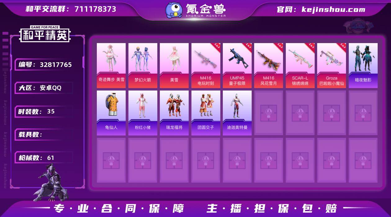 【2粉装】角色-美雪,梦幻火箭【7特效枪】ACE32-萌骑漫游[3级],M416-电玩时刻[3级],Mk14-福马献瑞[1级],UMP45-量子极限[5级],M416-风花雪月[5级],SCAR-L-锦绣绵绵[3级],GROZA-巴啦啦小魔仙[4级]【1头盔】梦幻火箭头盔【87其它衣服和枪皮】马上来财,龟仙人,SS37特训,SS17特训,福星高照,热情海星,暗夜魅影,缤纷果语,狙击之神,锦衣飞扬,纯真浪花,龙的传人,海盐绵绵冰,SS28特训,快乐星愿,角色-情公主,SS36特训,SS25特训,特殊使命,角色-欧布奥特曼,团圆交子,SS27特训,粉红小猪,长空猛禽,角色-迪迦奥特曼,福马献瑞,潮流炫酷,角色-赛罗奥特曼,角色-捷德奥特曼,虎虎生威吉莉,瑞龙福将,角色-艾克斯奥特曼,竞技名士,爆炸猎弓-惊鸿侠骨,AKM-龙的传人,MG3-惊鸿侠骨,G36C-暗夜玫瑰,AA12-G-纯真浪花,GROZA-福马献瑞,Kar98K-梦幻火箭,AUG-天降萌叽,汤姆逊-像素花束,MG3-瑞龙福将,P90-倾城蜜语,MG-36-薄荷星砂,SCAR-L-致命红樱,QBZ-纯真浪花,撬棍-巴啦啦小魔仙,AWM-纯真浪花,平底锅-瑞龙福将,DBS-巴啦啦小魔仙,S12K-瑞龙福将,平底锅-纯真浪花,汤姆逊-纯真浪花,SKS-炫彩节奏,Mini14-炫...