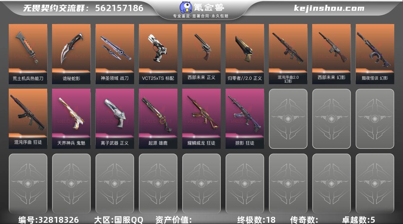 【944173】【4w库存黑波之刃.天御刀.剥皮小刀.紫金爪.古神镰刀.三狂徒三幻影混沌.威龙.镰刀.古神.西部.混沌幻影】YXy6186【无二次】【因赛季更新游戏段付以上号为准!】 【英雄】:幻棱,炼狱,维斯,暮蝶,钛狐,壹决,铁臂,捷风,雷兹,幽影,不死鸟,贤者,猎枭,蝰蛇,零,芮娜,奇乐,尚勃勒,霓虹,斯凯,夜露,星礈,K/O,海神,盖可,黑梦,钢锁 【近战武器】:近战武器-碎心裂刃,近战武器-剥皮小刀,近战武器-紫金爪刀,近战武器-黑波之刃,近战武器-鬼丸国纲,近战武器-未来开拓者,近战武器-荒土机兵 热能刀,近战武器-天御刀,近战武器-夜刃诡镰,近战武器-诡秘蛇影 军刀,近战武器-神圣领域 战刀 【狂徒】:狂徒-混沌序曲,狂徒-掠影,狂徒-耀鳞威龙,狂徒-荒土机兵,狂徒-诡秘蛇影 【幻影】:幻影-黯夜怪谈,幻影-西部未来,幻影-混沌序曲//2.0,幻影-神圣领域,幻影-纳米打击,幻影-末日之翼,幻影-西部未来 【戍卫】:戍卫-逆冲蛮牛,戍卫-月球哨兵,戍卫-折光棱晶 【獠犬】:獠犬-神圣领域,獠犬-逆冲蛮牛 【冥驹】:冥驹-荒土机兵,冥驹-星云暗涌 【飞将】:飞将-末日之翼 【莽侠】:莽侠-诡秘蛇影,莽侠-月球哨兵 【战神】:战神-神圣领域 【奥丁】:奥丁...