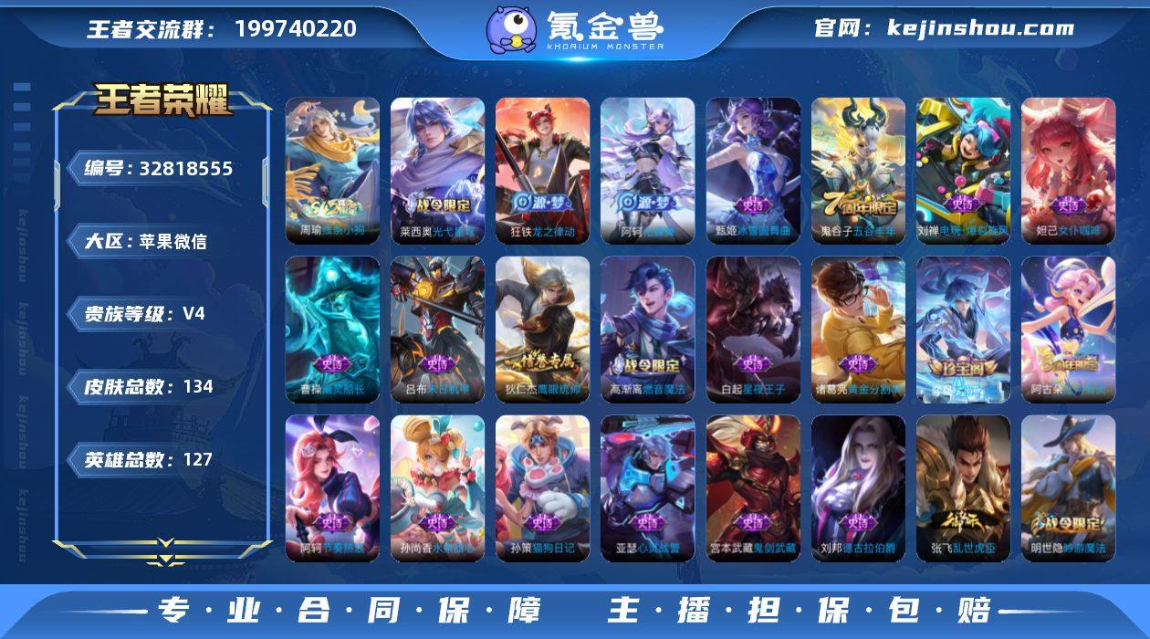 连体和平精英!苹果WX-V4-尊贵铂金II段位-127英雄-134皮肤-28史诗 【限定皮肤】:虞姬夏日便利店,姜子牙天穹之誓,狄仁杰阴阳师,高渐离玩趣恶龙,白起夜都怪侠,夏侯惇朔风刀,狄仁杰万华元夜,项羽海滩派对,老夫子醍醐杖,兰陵王金庭之子,李元芳云中旅人,钟馗驱傩正仪,鬼谷子原初探秘者,鬼谷子五谷丰年,弈星混沌棋,沈梦溪大漠名商,明世隐疑决卦,明世隐吟游魔法,裴擒虎擒涛扼浪,鲁班大师探海日志,桑启海盐诗旅,艾琳流音漫舞,阿古朵江河有灵,张良古海寻踪,高渐离燃音魔法,妲己灵卜魔法,鬼谷子天穹祈灯,李元芳蔬乡物语,刘邦剑破天穹,程咬金群星魔术团 【赛季限定】:夏侯惇朔风刀,弈星混沌棋,明世隐疑决卦,老夫子醍醐杖,鬼谷子原初探秘者,狄仁杰万华元夜,钟馗驱傩正仪,兰陵王金庭之子,沈梦溪大漠名商,李元芳云中旅人,桑启海盐诗旅,裴擒虎擒涛扼浪,鲁班大师探海日志,张良古海寻踪,鬼谷子天穹祈灯,刘邦剑破天穹,姜子牙天穹之誓,太乙真人谧流熔炉,亚瑟荣光之誓 【战令限定】:明世隐吟游魔法,白起夜都怪侠,艾琳流音漫舞,高渐离燃音魔法,妲己灵卜魔法,李元芳蔬乡物语,虞姬夏日便利店,莱西奥光弋星穹,明世隐往忆晖光,周瑜线条小狗...