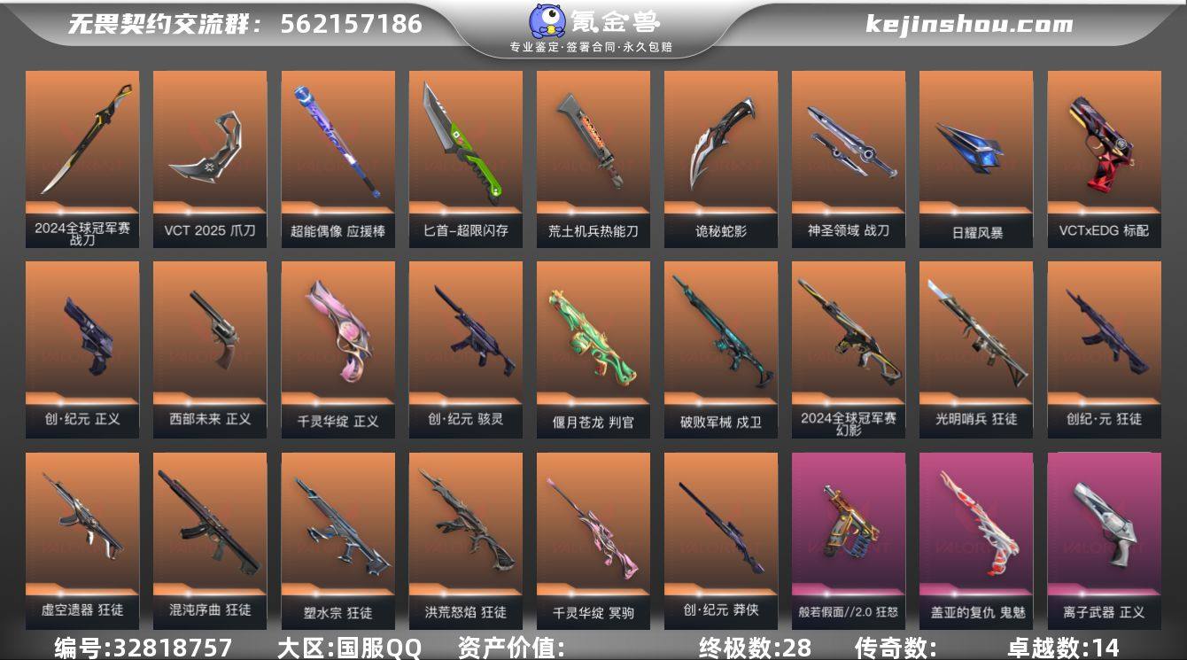 【WWD465】终极*28/卓越*14/皮肤*128/等级*206/段位:神话/2024全球冠军赛套装/VCT 2025赛季礼包/创·纪元套装/VCTCN2025套装/般若假面//2.0套装/幻棱/炼狱/维斯/暮蝶/钛狐/壹决/铁臂/捷风/雷兹/幽影/不死鸟/贤者/猎枭/蝰蛇/零/芮娜/奇乐/尚勃勒/霓虹/斯凯/夜露/星礈/K/O/海神/盖可/黑梦/钢锁/战刀-2024全球冠军赛/VCT 2025 爪刀/紫金爪刀/镭切/威龙之刃/鬼丸国纲/超能偶像 应援棒/匕首-超限闪存/荒土机兵热能刀/诡秘蛇影/神圣领域 战刀/日耀风暴/狂徒-光明哨兵/狂徒-洪荒怒焰/狂徒-混沌序曲/狂徒-塑水宗/狂徒-创·纪元/狂徒-虚空遗器/狂徒-般若假面//2.0/狂徒-掠影/狂徒-盖亚的复仇/狂徒-日冕雄师/狂徒-紫阙金琅/狂徒-离子武器2.0/狂徒-超能偶像/狂徒-钢轨卫士/狂徒-荒土机兵/狂徒-诡秘蛇影/幻影-2024全球冠军赛/幻影-侦察力量/幻影-超限闪存/幻影-神圣领域/幻影-聚合之力/幻影-纳米打击/幻影-战术小伙伴/幻影-末日之翼/戍卫-破败军械/戍卫-超能偶像/戍卫-钢轨卫士/戍卫-浮光跃金/戍卫-逆冲蛮牛/戍卫-月球哨兵/戍卫-折光棱晶/獠犬-般若假面//2.0/獠犬-日冕雄师/獠犬-神圣领域/獠犬-采蜜小蜂队/獠犬-模拟赫兹/獠犬-逆冲蛮牛/獠犬-战术小伙伴/冥驹-千灵华绽/冥驹-荒土机兵/冥驹-模...