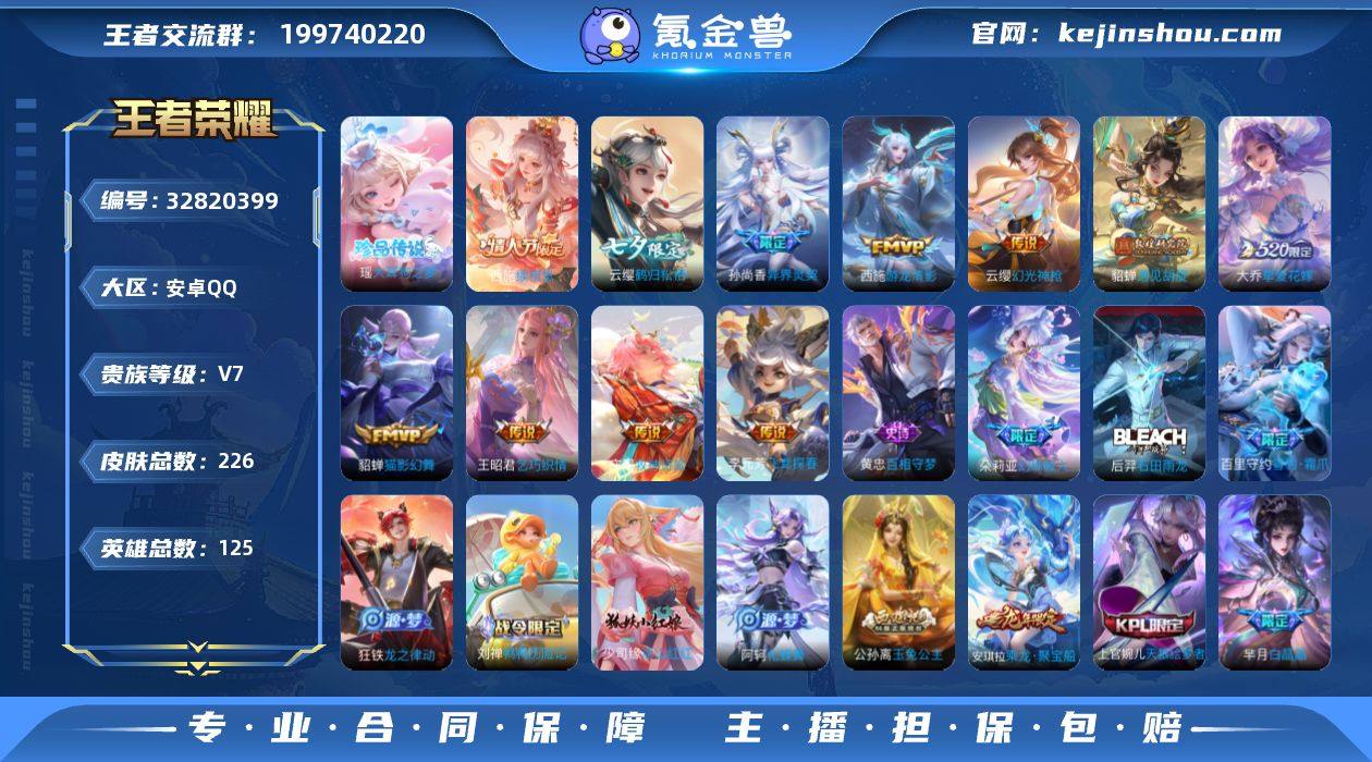 【精品女号·西施全皮·少司缘全皮·大耳狗之梦·愿照千秋盛·愿照福禄聚·云缨鹤归松栖·虞姬无限倾心·大乔挚爱花嫁·孙尚香异界灵契·遇见胡旋·寅虎心曲·乘龙聚宝船·白鹤梁神女·奇迹圣诞·蜜橘之夏·玉兔公主·纯白花嫁·无二次包过】w22185-安卓Q-125英雄-226皮肤-3王者印记-280铭文-贵族积分4w【贵族7】【1珍品·16传说·15按键·320幸运值】【因赛季更新游戏段付以上号为准!】 【英雄全皮】:孙权全皮,西施全皮,影全皮,少司缘全皮 【珍品传说】:瑶大耳狗之梦 【传说皮肤】:西施续相思,女娲愿照千秋盛,蔡文姬愿照福禄聚,云缨幻光神枪,王昭君映山客,桑启鸣野蒿,庄周牧神诗旅,云缨鹤归松栖,虞姬无限倾心,大乔挚爱花嫁,孙尚香异界灵契,貂蝉遇见胡旋,王昭君乞巧织情,西施游龙清影,李元芳飞鸢探春,貂蝉猫影幻舞 【限定皮肤】:虞姬夏日便利店,姜子牙天穹之誓,李白谪仙醉月,狄仁杰阴阳师,小乔纯白花嫁,赵云皇家上将,妲己热情桑巴,孙尚香异界灵契,芈月白晶晶,元歌无心,夏侯惇朔风刀,狄仁杰魔术师,狄仁杰万华元夜,达摩星际陆战队,达摩沙漠行僧,项羽海滩派对,貂蝉逐梦之音,貂蝉遇见胡旋,程咬金演武夺筹,露娜一生所爱,兰陵王金庭之子,李元芳匿光侦查者,李...