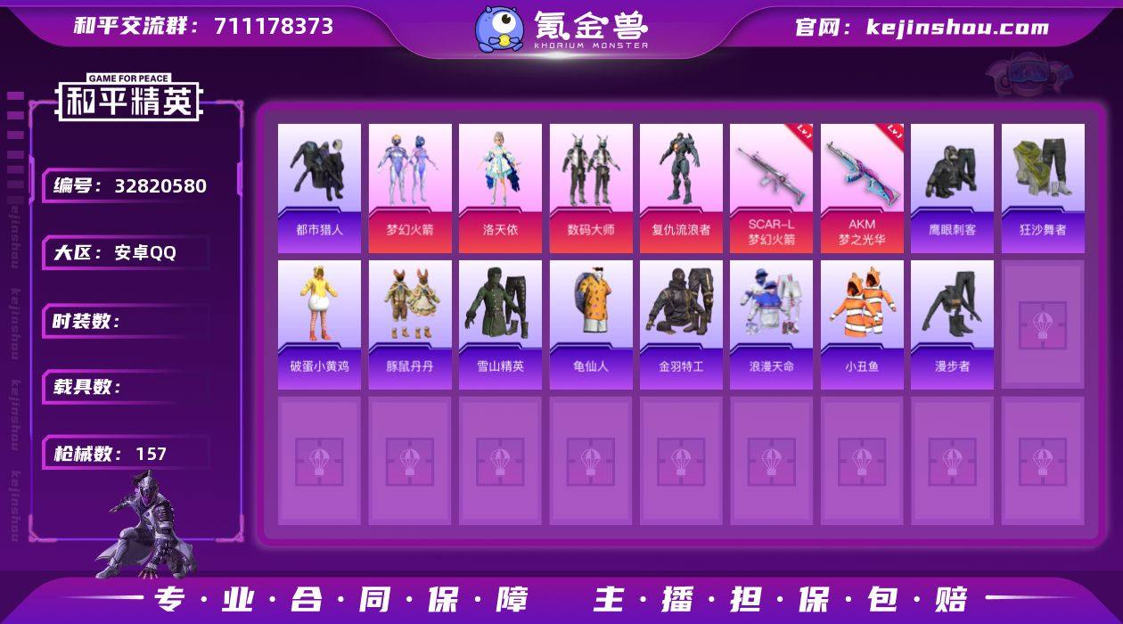 DYH18029【身法号地铁满天赋5粉装-7特效枪梦幻火箭 洛天依 都市猎人 小丑鱼 猫包】安卓手Q-5粉装-7特效枪-106套装-157枪皮-10王牌印记-超级王牌2星-46181热力值【5粉装】角色-洛天依,数码大师,角色-复仇流浪者,梦幻火箭,角色-羊梦糖心【7特效枪】Kar98K-巳巳如意[3级],蜜獾-异瞳寒姬[5级],SCAR-L-梦幻火箭[7级],DP-28-豹影疾电[3级],AKM-梦之光华[7级],Mk14-福马献瑞[2级],PKM-萌骑夺宝[4级]【5稀有】浪漫天命,狂沙舞者,都市猎人,小丑鱼,AKM-百万伏特【4飞行器】登顶巅峰飞行器,狂鲨锋刃飞行器,鸡智如我飞行器,炫彩糖果飞行器【1头盔】百万伏特头盔【2背包】梦幻火箭背包,百万伏特背包【246其它衣服和枪皮】SS36特训,老实芭蕉,都市漫游者,田园牧歌,牛气满满,光之冒险,春光漫游,电音精灵,玉兔迎春,午间小调,娇憨猪猪,SS21特训,长空猛禽,冰川特警,虚音幻奏,角色-风玲,冰河战士,破蛋小黄鸡,快闪甜心,雨过天青,和煦暖阳,秘语星愿,街头潮人,王牌教练,耀眼新星,柠萌假日,雪国风尚,SS23特训,风暴特警,甜蜜告白,SS26特训,SS28特训,SS35特训,红釉青花,雪兔飞飞,野性战心,竞技名士,雪山精英,SS22特训,暮夜私语,萌鸡速递,狙击之神,锦衣飞扬,龟仙人,霓虹街区,萌趣咩咩,妙红点点,SS24特训,...