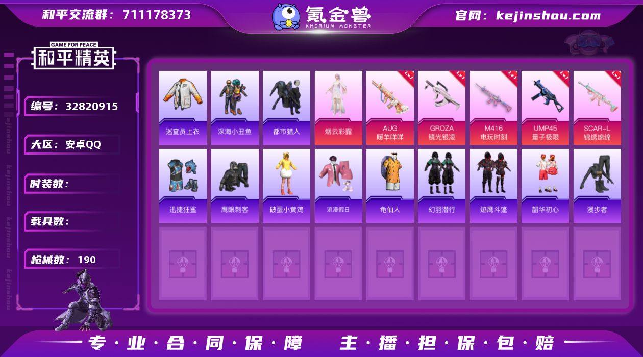 DYH18094【身法号3粉装-11特效枪 巡查衣服 都市 深海 猫包】安卓手Q-3粉装-11特效枪-148套装-190枪皮-19王牌印记-卓越王牌5星-57410热力值