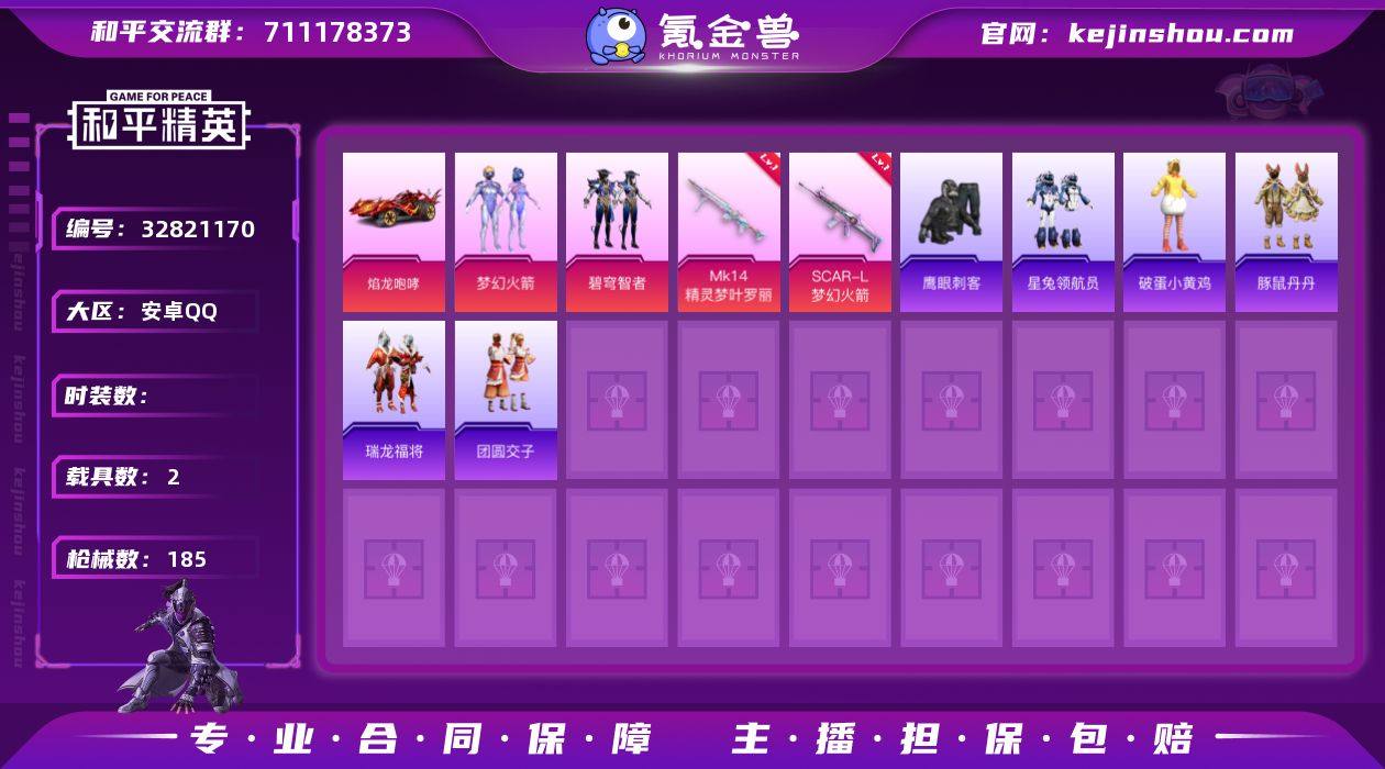 DYH17972【身法号3载具-3粉装-5特效枪梦幻火箭】安卓手Q-3载具-3粉装-5特效枪-131套装-185枪皮-10王牌印记-超级王牌2星-55750热力值【3载具】萌兔起飞 焰龙咆哮,玛莎拉蒂Quattroporte(夜幕蓝)【3粉装】角色-异瞳寒姬,梦幻火箭,碧穹智者【5特效枪】Kar98K-巳巳如意[5级],SCAR-L-梦幻火箭[6级],DP-28-豹影疾电[5级],Mk14-福马献瑞[5级],Mk14-精灵梦叶罗丽[5级]【2稀有】汤姆逊-奇异狩猎者,AWM-黄金龙骨【8飞行器】炫彩糖果飞行器,异域银装飞行器,梦幻火箭飞行器,马上有福飞行器,光之冒险尾迹,酣梦熊熊飞行器,狂鲨锋刃飞行器,鸡智如我飞行器【1头盔】梦幻火箭头盔【1背包】梦幻火箭背包【306其它衣服和枪皮】绮丽涂鸦,SS25特训,冰川特警,星途旅人,燕燕于飞,金耀舞者,福星高照,蓝色运动,萌趣咩咩,魅力单车,幻彩翩翩,缤纷果语,恋语绒绒,SS36特训,王牌教练,炫蓝之夏,猎鹰,豚鼠丹丹,光之冒险,田园牧歌,角色-情公主,夏日音浪,巳巳如意,橘黑制服,SS37特训,萌鸡速递,空岛之星,沙漠毒蛇,空投萌叽,鹰眼刺客,破晓战魂,SS22特训,幻影武者,幻世战舞者,长空猛禽,SS17特训,异域银装,人气偶像,SS18特训,骑行爱好者,麻辣教官,龙魂突击队,虚音幻奏,疯狂小兔子,角色-银尘,都市魅力,极速红龙,黄色伏...