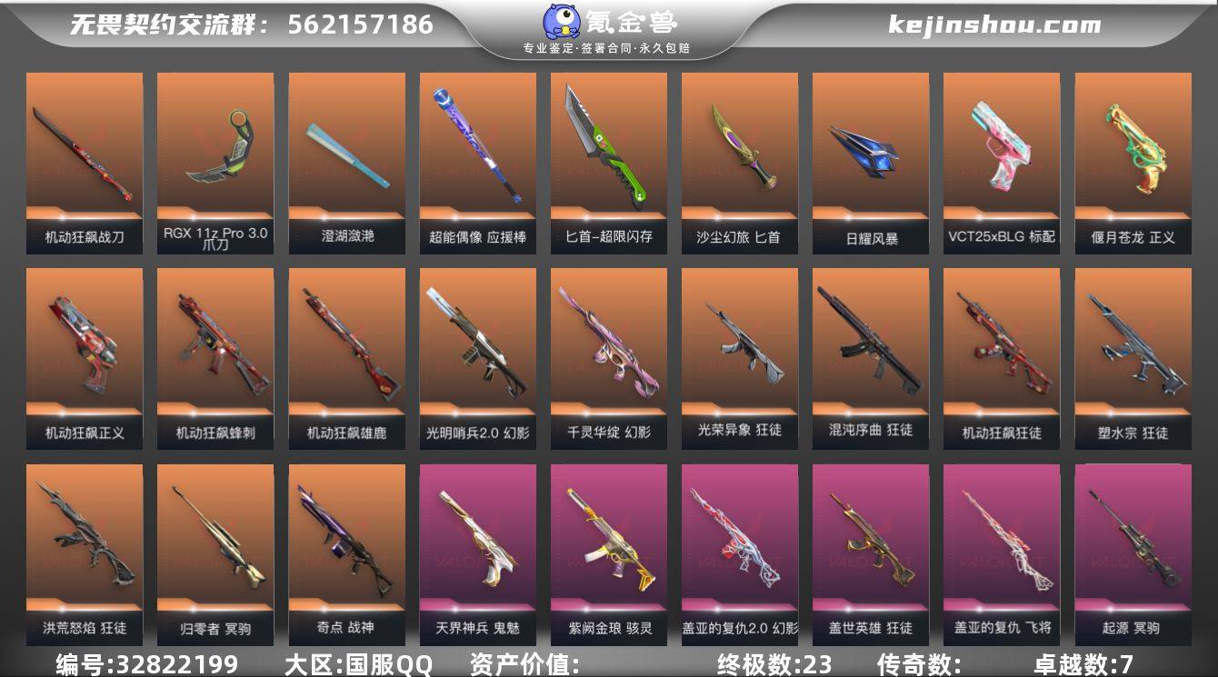 【427】【充了快5千性价比高支持小刀】 【套装】:机动狂飙套装 【英雄】:幻棱,炼狱,维斯,暮蝶,钛狐,壹决,铁臂,捷风,雷兹,幽影,不死鸟,贤者,猎枭,蝰蛇,零,芮娜,奇乐,尚勃勒,霓虹,斯凯,夜露,星礈,K/O,海神,盖可,黑梦,钢锁 【近战武器】:近战武器-剥皮小刀,近战武器-RGX 11z Pro//3.0 爪刀,近战武器-澄湖潋滟,近战武器-超能偶像 应援棒,近战武器-超限闪存 匕首,近战武器-机动狂飙 战刀,近战武器-魄月玄刃,近战武器-沙尘幻旅 匕首,近战武器-日耀风暴 遗器 【狂徒】:狂徒-洪荒怒焰,狂徒-混沌序曲,狂徒-机动狂飙,狂徒-塑水宗,狂徒-光荣异象,狂徒-盖世英雄,狂徒-超能偶像,狂徒-钢轨卫士,狂徒-弧光异彩,狂徒-沙尘幻旅,狂徒-永恒之砂 【幻影】:幻影-光明哨兵//2.0,幻影-千灵华绽,幻影-盖亚的复仇//2.0,幻影-超限闪存,幻影-浪漫雪国,幻影-聚合之力,幻影-战术小伙伴 【戍卫】:戍卫-超能偶像,戍卫-钢轨卫士,戍卫-彩梦之城,戍卫-浮光跃金,戍卫-萌彩剪影 【獠犬】:獠犬-弧光异彩,獠犬-采蜜小蜂队,獠犬-胡桃狂想,獠犬-模拟赫兹,獠犬-战术小伙伴 【冥驹】:冥驹-归零者,冥驹-盖世英雄,冥驹-起源,冥驹-胡桃狂想,冥驹-模...