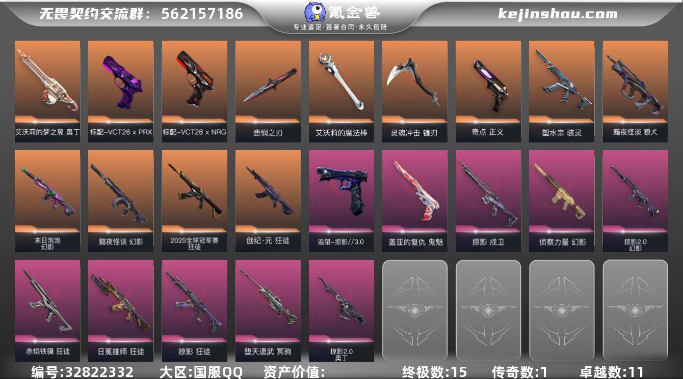 【944309】15橙皮 1金皮 11紫皮 57皮肤 21英雄 59卡面 590已用源晶 钻石段位 【亮点皮肤】悲悯之刃 【套装】掠影//3.0套装 【近战武器皮肤】碎心裂刃,悲悯之刃,蒙太奇 战斧,影蝶-掠影//3.0,艾沃莉的魔法棒,镰刃-灵魂冲击 【佩枪皮肤】标配-VCT26 x NRG,标配-VCT26 x PRX,超集系统 标配,风暴之子 正义,追猎-掠影//3.0,蒙太奇 狂怒,正义-奇点,鬼魅-盖亚的复仇,标配-赛博迷城 【冲锋枪皮肤】骇灵-塑水宗,蒙太奇 骇灵 【霰弹枪皮肤】风暴之子 雄鹿 【步枪皮肤】狂徒-创·纪元,戍卫-掠影,狂徒-掠影,狂徒-赤焰铁骥,风暴之子 戍卫,蒙太奇 幻影,超集系统 狂徒,2025全球冠军赛 狂徒,幻影-末日泡泡,幻影-掠影2.0,幻影-黯夜怪谈,獠犬-黯夜怪谈,狂徒-日冕雄师,幻影-侦察力量 【狙击枪皮肤】风暴之子 冥驹,超集系统 飞将,冥驹-堕天遗武 【机枪皮肤】蒙太奇 战神,奥丁-掠影2.0,奥丁-艾沃莉的梦之翼 【挂饰】风暴之子 挂饰,V26第一幕纪念币 挂饰,协议假人 挂饰,超集系统 挂饰,H2-Oh!挂饰,掠影//3.0挂饰,无畏契约GO!第一卷奇乐挂饰,VCTxPRX挂饰,VCTxNRG挂饰,打不烂的挂饰
