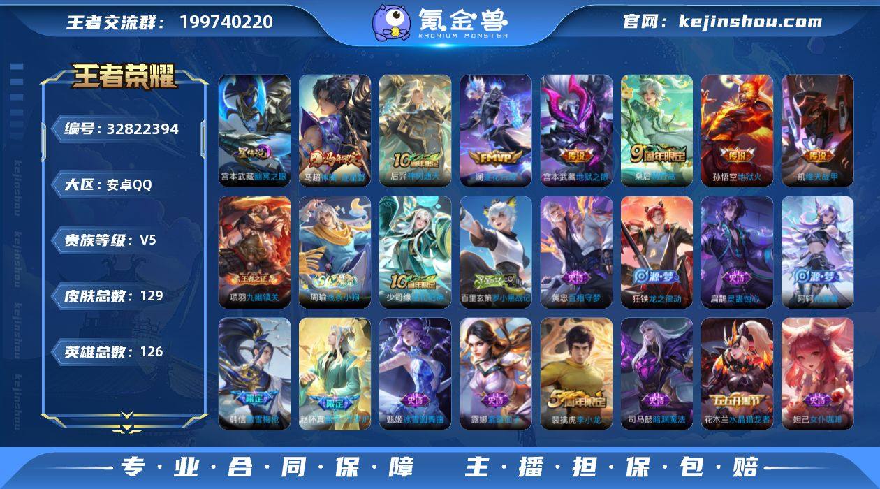贵族等级: V5 英雄数: 126 皮肤数: 129 星传说: 幽冥之眼 传说皮: 绛天战甲,地狱火,地狱之眼,澜逐花归海,神树通天,神骥·逐星野 限定皮: 李小龙,傲雪梅枪,降魔,鸣野蒿,陌上桑