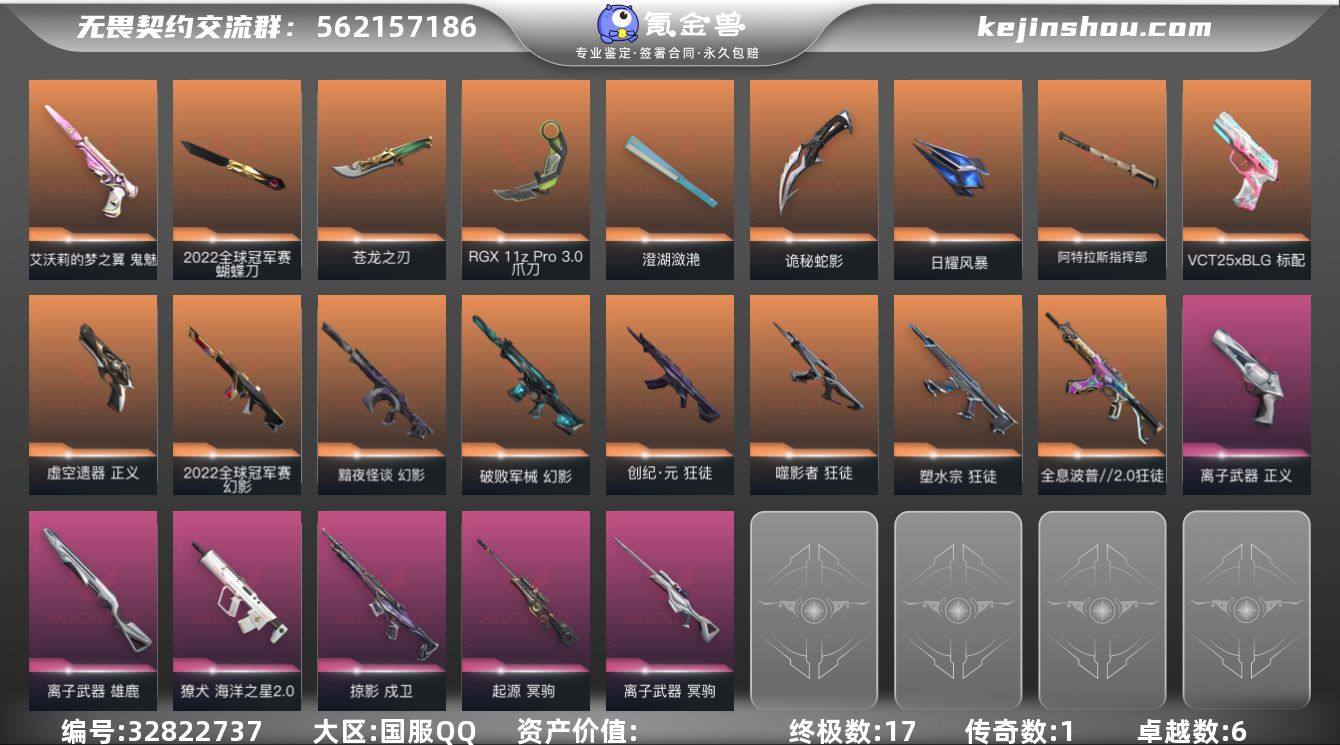 【NF109】【套装】:2022全球冠军赛套装 【英雄】:幻棱,炼狱,暮蝶,壹决,捷风,雷兹,不死鸟,贤者,猎枭,尚勃勒,霓虹,夜露 【近战武器】:近战武器-2022全球冠军赛 蝴蝶刀,近战武器-5周年//公测重制版 苍龙之刃,近战武器-RGX 11z Pro//3.0 爪刀,近战武器-澄湖潋滟,近战武器-鬼丸国纲,近战武器-诡秘蛇影 军刀,近战武器-日耀风暴 遗器,近战武器-阿特拉斯指挥部 甩棍 【狂徒】:狂徒-全息波普//2.0,狂徒-塑水宗,狂徒-创·纪元,狂徒-噬影者,狂徒-诡秘蛇影 【幻影】:幻影-2022全球冠军赛,幻影-黯夜怪谈,幻影-破败军械,幻影-末日之翼 【戍卫】:戍卫-掠影,戍卫-折光棱晶 【獠犬】:獠犬-海洋之星//2.0 【冥驹】:冥驹-离子武器,冥驹-起源 【飞将】:飞将-末日之翼 【莽侠】:莽侠-诡秘蛇影 【奥丁】:奥丁-末日之翼 【判官】:判官-诡秘蛇影 【雄鹿】:雄鹿-离子武器 【蜂刺】:蜂刺-折光棱晶 【标配】:标配-折光棱晶 【VCT手枪】:标配-VCT25 x BLG 【正义】:正义-虚空遗器,正义-离子武器 【鬼魅】:鬼魅-艾沃莉的梦之翼,鬼魅-诡秘蛇影 【短炮】:短炮-末日之翼 【卡面】:欢迎来到底城 卡面,南瓜盛典 卡面,维斯工牌 卡面,正义的化身 卡面,树懒大...