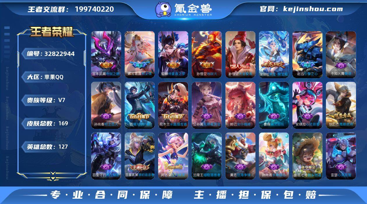 V7 6传说 127英雄 169皮肤 可修改实名 男号 【英雄全皮】蚩奼全皮,大禹全皮 【稀有英雄】大司命,嬴政(始皇帝),韩信(韩跳跳),夏洛特(夏师傅),艾琳,橘右京(橘子),娜可露露(鸟人),不知火舞,赵云,金蝉(唐僧),戈娅 【传说皮】神树通天,地狱火,仲夏夜之梦(大飞蛾),地狱之眼,时之恋人-刘备(电焊工) 【珍宝阁皮】女武神 【赛季/战令皮】噬灭天穹(s37),古海寻踪(s33),海盐诗旅(s30),擒涛扼浪(s31),潮玩骑兵,探海日志(s32),流音漫舞,地狱燃心,剑破天穹(s35),天穹祈灯(s34),青焰无极,苍威无极,穷奇(s12),御狮(s13),御霄(s14),御旌(s15),御銮(s16),朔风刀(s17),混沌棋(s18),疑决卦(s19),圣弓游侠 【史诗皮】乘龙·聚宝船(安琪拉年限),蔬乡物语(鲁班七号),怒海争锋,线条小狗-周瑜,九幽镇关,线条小狗-小乔,巫礼祀神,万灵启世,罗小黑战记-百里玄策,百相守梦-黄忠,白龙吟,特工魅影,江河有灵,蒙恬荣光圣徽,真我赫兹(百里守约),无限星赏官,偶像歌手,魅语,猫狗日记-孙策,时之恋人-孙尚香,节奏热浪,女仆咖啡,摇滚巨星,水果甜心,天才门将,心灵骇客,德古拉伯爵,暗隐猎兽者,幽灵船长,鬼剑武藏,心灵战警,水晶猎龙者,曙光守护者,原初追逐者,圣诞狂欢,圣诞恋歌,鹰眼统帅,魅力维加斯 【限定皮】前尘镜,天...
