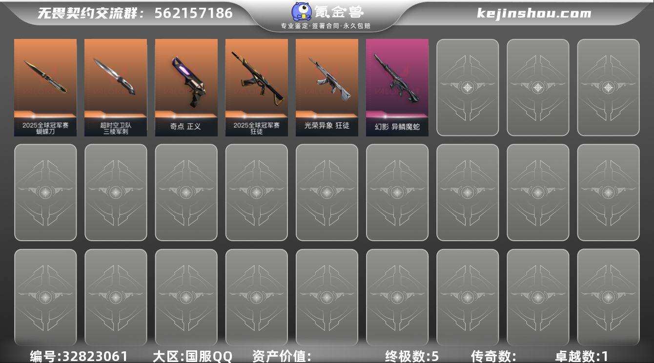 【NF191】【套装】:2025全球冠军赛套装 【英雄】:幻棱,炼狱,暮蝶,壹决,捷风,幽影,不死鸟,贤者,猎枭,零,芮娜,K/O,盖可,黑梦 【近战武器】:近战武器-2025全球冠军赛 蝴蝶刀,近战武器-超时空卫队 三棱军刺 【狂徒】:狂徒-2025全球冠军赛,狂徒-光荣异象 【幻影】:幻影-异鳞魔蛇 【正义】:正义-奇点 【卡面】:无畏契约:暮蝶 卡面,无畏契约GO!第一卷:零 卡面,代号红色 卡面,新兵报到 卡面,V契约 卡面,无畏契约 卡面 【喷漆】:伤心心 喷漆,买装还是存钱 喷漆,胜利属于无畏契约 喷漆,GLHF 喷漆,无畏契约 喷漆 【挂饰】:天外飞客 挂饰,无畏契约 纪念币 挂饰