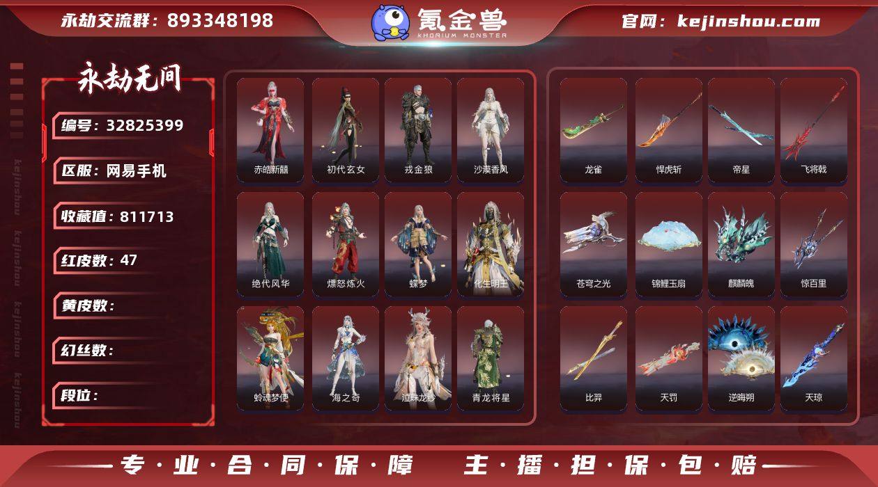 YJJ2088/4.27换绑/等级719/s19三人无间修罗/50红1079金收藏值811713/50红色神品:/赤皓新囍/初代玄女/星辉魔纱/化生明王/长天藏锦/戎金狼/熛怒炼火/蝶梦/蛉魂梦使/泣珠龙纱/海之奇/青龙将星/凌霄之羽/香雪水兰/暮光胴丸/绝代风华/沙漠香风/监兵凶神/夜魅游莹/通天狐袄/化道者/执明神君/流金晓锦/守墨麒/命定之辉/麒麟魄/冰魄_/少阳剑/灵狐幻刃/帝星/比羿/烈阳_/狼主/龙雀/悍虎斩/飞将戟/涯角/灵犀/如意金箍棒/天琼/逆晦朔/锦鲤玉扇/狂龙/凤求凰/诡月幽蔷/惊百里/天罚/苍穹之光/毕方/墨离/【技能奥义】/神君印/星熠/剪纸彩刀/揽九天/彩俑娃娃/初代机/凶虎/雪霜姿 宁红夜:/赤皓新囍/初代玄女/相柳/昆仑之主/山川润/自知/耀世魂花/傲昆仑/玄豹姿/红川仙子/夜华朝/午后瑰夏/素贞/紫金玉女/蜘蛛精/雪山天女/昆仑圣女/霜天红叶/九阴圣女/碧水青天/泠川发/阙光发/红绡发/蛛缘发/缥缈发/月白发/簪缨发/云霞发/落霜发/倒反阴阳焚枷发/双马尾女 沈妙:/星辉魔纱/涂鸦少女/奥村春NOIR/初夏绯莓/秋藏桂/悠竹萌客/云溪仙子/腓腓/咏春/絮云衣/百灵发/烂漫发/娇憨发/忘忧发/撞色艺术发/NOIR发型/双马尾女 天海:/化生明王/九骊之君/八宝龙王/生死局/若水尊者/净金宝相/法海/少林/觉之一念/裟伽龙...