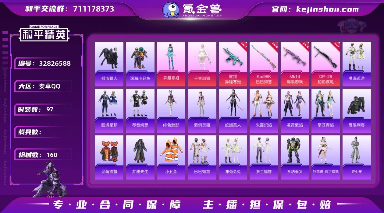 安卓 手Q-3粉装-8特效枪-0载具-3粉色飞行器-45253热力值-5王牌印记-97套装-160枪皮【热门品类】:套装-都市猎人,套装-深海小丑鱼,套装-小丑鱼【粉色套装】:角色-千金淑猫,角色-异瞳寒姬,角色-辉云木星【粉色枪皮等级】:蜜獾-异瞳寒姬(七级),AKS-74U-森灵之息(五级),Kar98K-巳巳如意(五级),Mk14-爆裂游戏(四级),Mk14-辉云木星(七级),Mk14-福马献瑞(一级),AA12-G-萌骑幻想(四级),DP-28-豹影疾电(一级)【粉色枪皮】:蜜獾-异瞳寒姬,AKS-74U-森灵之息,Kar98K-巳巳如意,Mk14-爆裂游戏,Mk14-辉云木星,Mk14-福马献瑞,AA12-G-萌骑幻想,DP-28-豹影疾电【粉色飞行器】:香车宝马飞行器,炫彩糖果飞行器,辉光之愿飞行器【粉色降落伞】:江南烟雨降落伞,精灵梦叶罗丽降落伞,星梦奇缘降落伞,初号机 觉醒Ver.降落伞,忍者神龟降落伞,临安公主降落伞,幻影飞狐降落伞,星穹咏叹调降落伞,双重狂想降落伞,异瞳寒姬降落伞,极意拳锋降落伞,炫彩糖果降落伞,暮色玫影降落伞,罪夜之冕降落伞,辉云木星降落伞,辉光之愿降落伞【稀有套装】:套装-巳巳如意,套装-雪国风尚,套装-炫彩糖果,套装-小财神当家,套装-马上来财,套装-迅捷龙虾,套装-雏菊兔兔,套装-萝兰蝴...