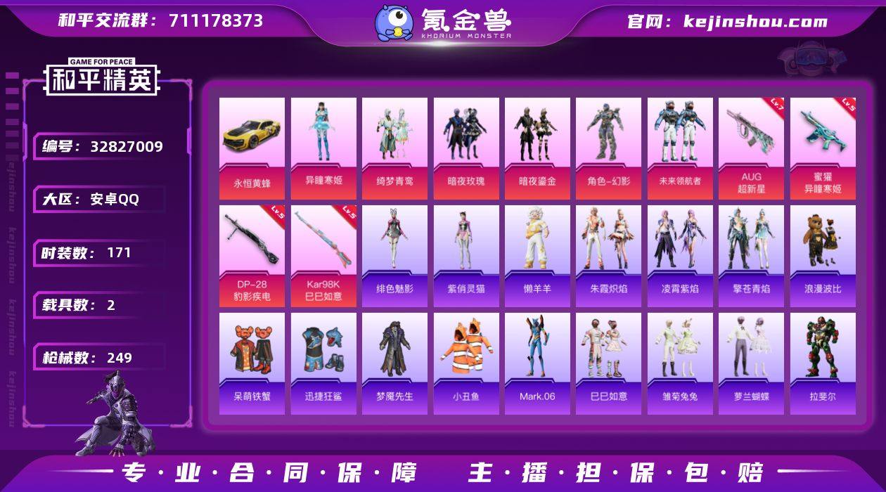 安卓 手Q-6粉装-5特效枪-2载具-2粉色飞行器-74503热力值-4王牌印记-171套装-249枪皮【热门品类】:套装-小丑鱼,套装-浪漫波比,角色-Mark.06【粉色套装】:粉装-绮梦青鸾,粉装-暗夜玫瑰,粉装-暗夜鎏金,角色-幻影,粉装-未来领航者,角色-异瞳寒姬【粉色枪皮等级】:AUG-超新星(七级),蜜獾-异瞳寒姬(五级),P90-诸神·破晓(四级),Kar98K-巳巳如意(五级),DP-28-豹影疾电(五级)【粉色载具】:法拉利Purosangue(赛车红),永恒黄蜂【粉色枪皮】:AUG-超新星,蜜獾-异瞳寒姬,P90-诸神·破晓,Kar98K-巳巳如意,DP-28-豹影疾电【粉色飞行器】:炫彩糖果飞行器,萌物绒绒飞行器【粉色降落伞】:伏魔团降落伞,绮梦青鸾降落伞,星之彼岸降落伞,暗夜玫瑰降落伞,天之羽翼降落伞,垂柳戏鸭降落伞,守护天翼降落伞,临安公主降落伞,星穹咏叹调降落伞,异瞳寒姬降落伞,炫彩糖果降落伞【稀有套装】:套装-巳巳如意,套装-雪国风尚,套装-炫彩糖果,套装-雏菊兔兔,套装-萝兰蝴蝶,角色-拉斐尔,套装-星渊小夜曲,套装-朱霞炽焰,套装-凌霄紫焰,套装-擎苍青焰,玩偶服-懒羊羊,角色-绯色魅影,角色-紫俏灵猫,套装-雨过天青,套装-红釉青花【稀有枪皮】:AUG-冰晶雪宝,AKM-夜灯...