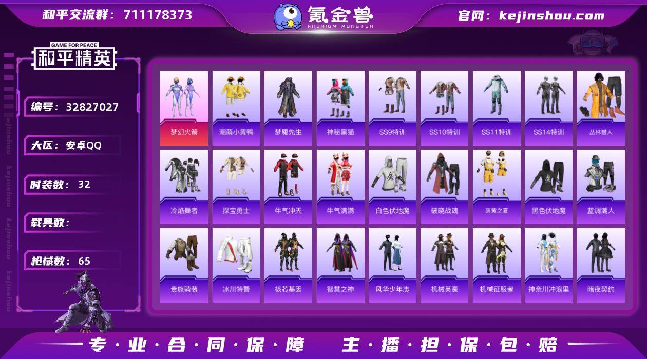 安卓 手Q-1粉装-0特效枪-0载具-0粉色飞行器-17223热力值-0王牌印记-32套装-65枪皮【热门品类】:粉装-梦幻火箭,套装-潮萌小黄鸭【粉色套装】:粉装-梦幻火箭【粉色降落伞】:炫紫旋律降落伞,神秘黑猫降落伞,伏魔团降落伞,夏日绵绵冰降落伞【稀有枪皮】:AKM-夜灯,AKM-灼热熔岩,M16A4-夜灯,M16A4-机械英豪,SCAR-L-炫彩节奏,M416-夜灯,M416-神秘黑猫,M416-红色方程式,M416-蓝色火焰,GROZA-黑色刀锋,AUG-耀粉歌者,QBZ-原初圣火,M762-奇异狩猎者,M762-牛气冲天,M762-诡娃娃,M762-镭射皇者,G36C-不夜海上花,UZI-众神之王,UMP45-夜灯,UMP45-生命誓言,Vector-PEL轰鸣竞梦者,Vector-彩虹符号,Vector-生命誓言,野牛-机械英豪,MP5K-众神之王,Kar98K-彩虹符号,Kar98K-红色方程式,Kar98K-马卡龙,M24-众神之王,AWM-不夜海上花,SKS-怪兽之王,VSS-繁花小夜曲,VSS-镭射皇者,Mini14-原初圣火,Mini14-炫彩节奏,Win94-机械英豪,SLR-众神之王,QBU-不夜海上花,S686-不夜海上花,S686-生命誓言,S1897-神秘黑猫,S1897-镭射皇者,S12K-机械英豪,DBS-荧海星豚,M249-古堡领主,DP-28-原初圣火,MG3-幻世战舞者,P18C-原初圣火【其他套装】:套装-SS9特训...