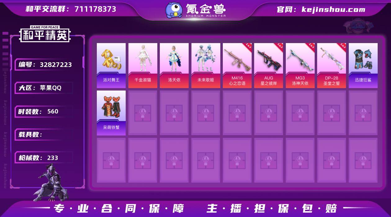 【稀有枪皮】Kar98K-巳巳如意,Vector-最终圣卫者,ACE32-萌骑漫游,14-福马献瑞,DP-28-豹影疾电,M416心之恋语,AUG星之彼岸,MG3洛神天依,DP-28圣堂之誓