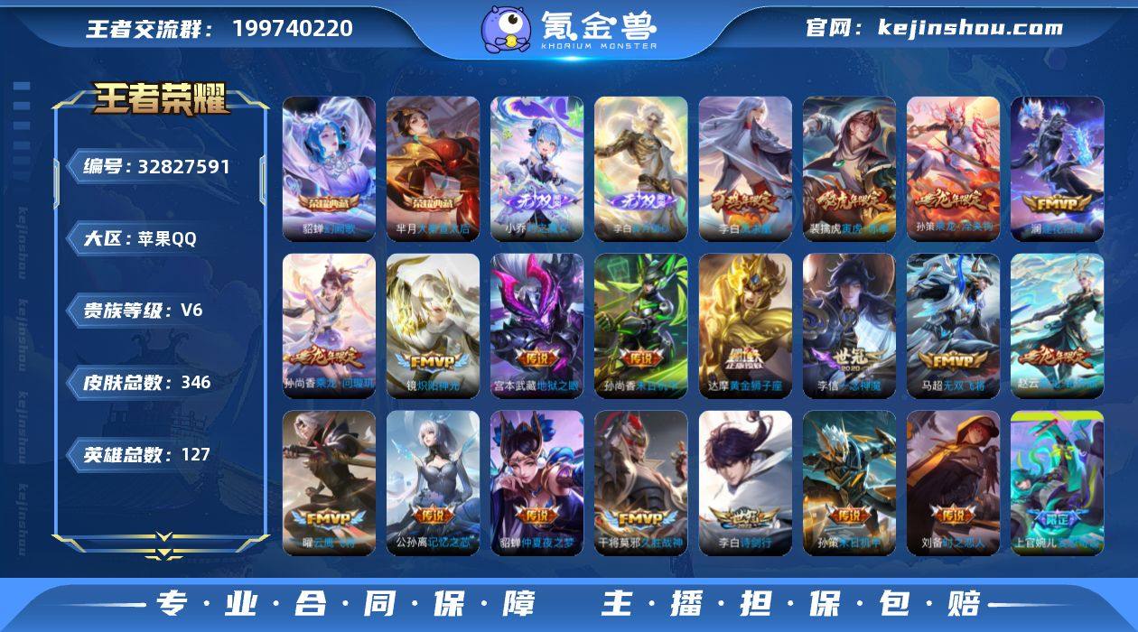 苹果Q-V6-永恒钻石IV段位-127英雄-346皮肤-2典藏皮肤-2无双-25传说-98史诗 【荣耀典藏】:芈月大秦宣太后,貂蝉幻阙歌 【无双皮肤】:小乔时之魔女,李白碎月剑心 【传说皮肤】:孙尚香乘龙问璇玑,孙策乘龙淬吴钩,赵云乘龙铭钟鼎,澜逐花归海,上官婉儿妄想奇谈,公孙离记忆之芯,李白诗剑行,马超无双飞将,孙策末日机甲,裴擒虎寅虎赤拳,镜炽阳神光,虞姬启明星使,孙悟空零号赤焰,曜云鹰飞将,李信一念神魔,刘备时之恋人,张良黄金白羊座,干将莫邪久胜战神,虞姬云霓雀翎,达摩黄金狮子座,貂蝉仲夏夜之梦,李白凤求凰,孙尚香末日机甲,宫本武藏地狱之眼,狄仁杰超时空战士 【限定皮肤】:白起狰,狄仁杰阴阳师,虞姬凯尔特女王,赵云皇家上将,墨子神迹守卫,嬴政优雅恋人,孙尚香蔷薇恋人,鲁班七号狮舞东方,庄周高山流水,高渐离死亡摇滚,钟无艳王者之锤,孙膑妖精王,扁鹊炼金王,白起夜都怪侠,芈月重明,吕布御风骁将,元歌云间偶戏,元歌无心,夏侯惇朔风刀,甄姬游园惊梦,曹操烛龙,典韦穷奇,狄仁杰魔术师,狄仁杰万华元夜,达摩沙漠行僧,项羽海滩派对,老夫子醍醐杖,老夫子航海奇遇记,关羽冰锋战神,程咬金演武夺筹,韩信飞衡,王昭君午后时光,兰...