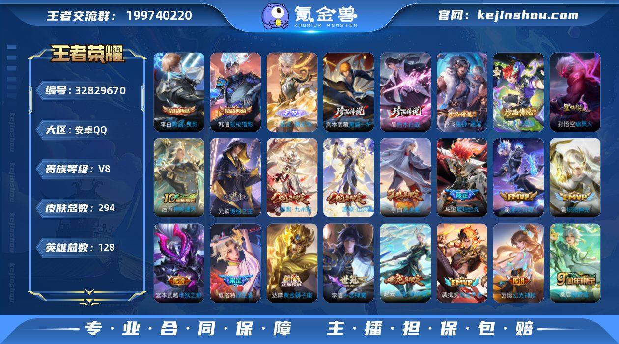 【店铺主推·金标万战李白·鸣剑曳影·弑枪猎影·器灵螭龙剑·黑崎一护·朽木白哉·兔狲蓬尾·孙策时之奇旅·诡秘之主·愿照山河定·愿照九州拓·马超琥珀纪元·逐花归海·浮生妄·无二次包过】YXw20076-安卓Q-128英雄-294皮肤-10王者印记-130铭文-贵族积分8w【贵族8】【2典藏·1无双·4珍品·1星传说·21传说·43按键】【因赛季更新游戏段付以上号为准!】 【英雄全皮】:孙权全皮,苍全皮,敖隐全皮,蒙恬全皮,司空震全皮,空空儿全皮 【荣耀典藏】:李白鸣剑曳影,韩信弑枪猎影 【无双皮肤】:曜器灵螭龙剑 【珍品传说】:宫本武藏黑崎一护,暃朽木白哉,张飞兔狲蓬尾,孙策时之奇旅 【星元皮肤】:孙悟空幽冥火 【传说皮肤】:后羿神树通天,元歌诡秘之主,司空震愿照山河定,澜愿照九州拓,云缨幻光神枪,裴擒虎祥瑞亨通,桑启鸣野蒿,赵云乘龙铭钟鼎,马超琥珀纪元,澜逐花归海,马可波罗妄想实况,夏洛特浮生妄,孙策末日机甲,镜炽阳神光,虞姬启明星使,李信一念神魔,干将莫邪久胜战神,达摩黄金狮子座,李白凤求凰,宫本武藏地狱之眼,孙悟空地狱火 【限定皮肤】:暃埋骨钱,蔡文姬夏日便利店,虞姬夏日便利店,姜子牙天穹之誓,李白谪仙醉月,狄仁杰阴阳师,赵云皇家上将,钟无艳超时...