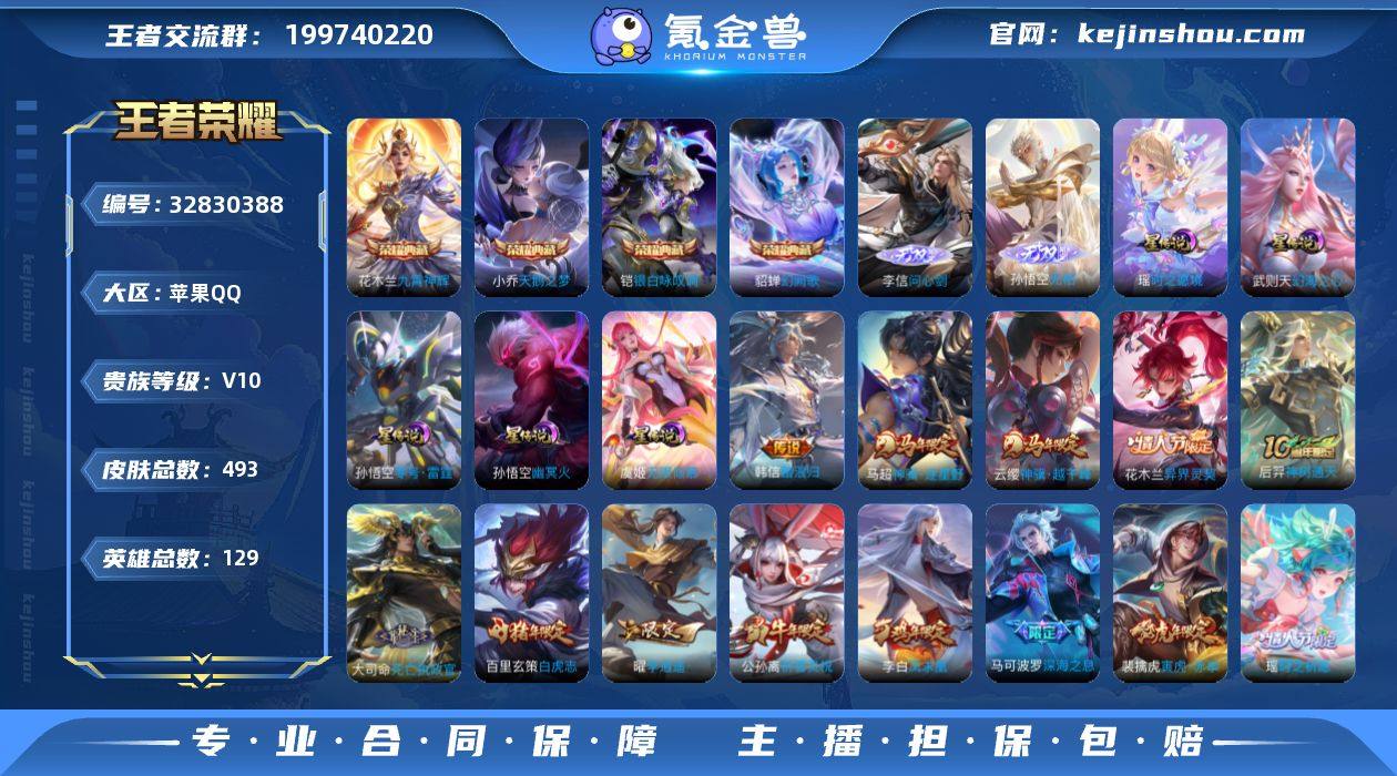 【精品V10推荐·2.8W流光积分·82传说·5典藏·2无双·紫瑶·无限倾慕·全皮花木兰·全皮百里玄策·全皮李信·万战金标李信·猪年全限定·兔年全限定·秋月华灯天幕·可二次】YXw17541-苹果Q-129英雄-493皮肤-28王者印记-300铭文-贵族积分23w【贵族10】【5典藏·2无双·5星传说·82传说·2天幕·8按键·170个性戳戳】【因赛季更新游戏段付以上号为准!】 【英雄全皮】:刘邦全皮,孙权全皮,花木兰全皮,娜可露露全皮,橘右京全皮,鬼谷子全皮,百里玄策全皮,狂铁全皮,李信全皮,盾山全皮,猪八戒全皮,敖隐全皮,鲁班大师全皮,蒙恬全皮,夏洛特全皮,空空儿全皮,影全皮 【荣耀典藏】:武则天英雄,小乔天鹅之梦,花木兰九霄神辉,铠银白咏叹调,貂蝉幻阙歌 【无双皮肤】:李信问心剑,孙悟空无相 【星元皮肤】:虞姬无限倾慕,瑶时之愿境,孙悟空零号雷霆,武则天幻海之心,孙悟空幽冥火 【天幕】:秋月华灯天幕,共赏芳华天幕 【传说皮肤】:韩信踏浪归,云缨神骥越千峰,马超神骥逐星野,花木兰异界灵契,后羿神树通天,大司命死亡执政官,桑启鸣野蒿,艾琳觅芳踪,露娜霜月吟,东皇太一灼幽烈阳,公孙离记忆之芯,夏洛特浮生妄,干将莫邪画中仙,花木兰燃星之曲,虞姬无限倾心,项羽无限倾...