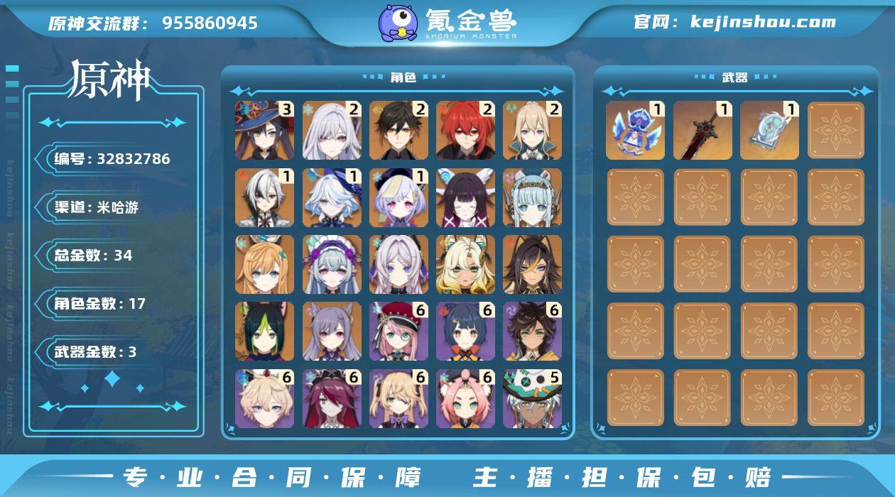 34黄!冰水战舰!月感电战舰!融仆!2命丝柯克!少女!伊涅芙!1命芙宁娜!1命仆人!0+1茜特菈莉!爱可菲!希诺宁!3命莫娜!冒险等级: 59 3命金色角色: 三命莫娜 2命金色角色: 二命迪卢克,二命钟离,二命琴,二命丝柯克 1命金色角色: 一命七七,一命芙宁娜,一命阿蕾奇诺 0命金色角色: 刻晴,提纳里,迪希雅,希诺宁,茜特菈莉,梦见月瑞希,爱可菲,伊涅芙,哥伦比娅 拥有武器: 狼的末路,四风原典,祭星者之望 1精武器: 狼的末路,四风原典,祭星者之望