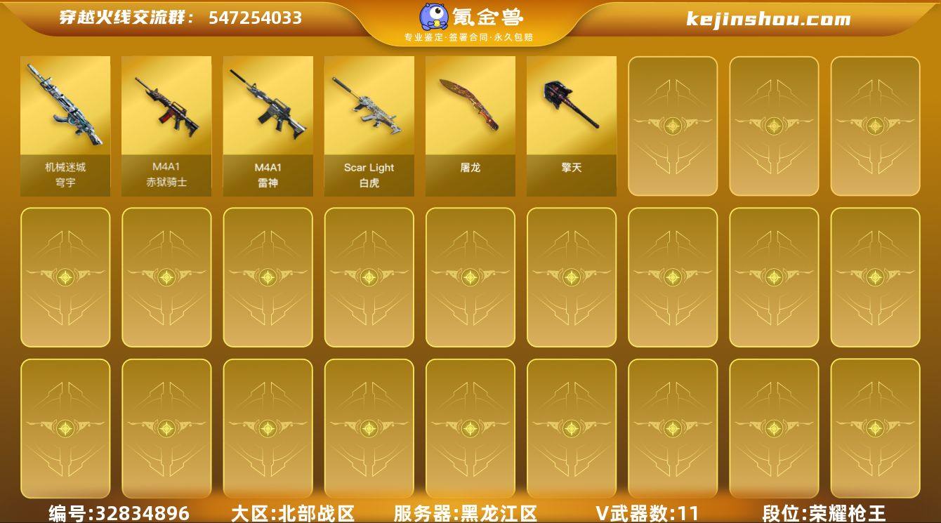 【ky6402】黑龙江区-15V-0王者武器数-0炫金武器数 【传说武器】:神威天绫 【热门武器】:Scar Light-白虎 【音效卡】:Scar Light-白虎音效卡 【皮肤】:毁灭-百城浙江 皮肤 【角色】:暗夜-X,北极狐-X,风暴女,0号玩家,龙儿,潘多拉-甜心教官,蛇姬,影武者-X,潘多拉-N 【人偶武器】:迷你救赎猎手,迷你地狱终结者,迷你艾比 【挑战大师】:AK47-冰龙粉碎者 【英雄级武器】:M4A1-雷神,Scar Light-白虎,机械迷城-穹宇,屠龙,擎天,屠龙-斗烈龙驹,闪光弹-玄豹,M4A1-赤狱骑士 【源级武器】:源·火麒麟,源·雷神,魂·M4A1-雷神-化蛇*2,魂·雷神-神秘按键,魂·雷神-新春神龙*2,源·黑骑士,魂·黑骑士-破浪10年,御·黑骑士·哪吒闹海,灵·黑骑士-炫光,魂-死神-机甲核心,魂·黑武士-锋芒破茧,源·武圣,源·机械迷城,源-龙血,魂·龙血-锋芒破茧*2,M4A1-青龙-掌上穿越火线,魂·HK417-朱雀-凤灵,源·HK417-朱雀,源-金色蔷薇,金色蔷薇-狼王,魂·QBZ03-金色蔷薇-蛇姬,QBZ03-文殊坊,魂·9A91·烈火-电子连击,源·玫瑰精灵,魂·英雄-湾区光枢,Barrett-极光-掌火,源·天龙,魂·天龙-彼岸花,魂·裁决-凤灵,魂·裁决-羽掣,魂·毁灭-航天科技,魂·毁灭-神秘黑洞,御·毁灭-黑大...