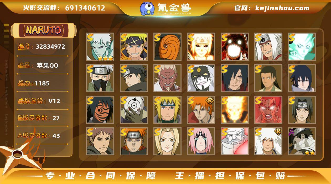 20912|【可实名】可二次 1185w战力 v12 苹果QQ 656区 S忍者数:27 A忍者数:43 时装12苹果QQ 656区 S忍者数:27 A忍者数:43 忍者:宇智波带土「十尾人柱力」,漩涡鸣人·宇智波佐助,宇智波斑「五影会谈」,波风水门「九喇嘛连结」,漩涡鸣人「暴怒·第六尾」,自来也「传说中的三忍」,大筒木舍人「最终章」,旗木卡卡西「须佐能乎」,宇智波止水「须佐能乎」,艾「忍界大战」,大筒木桃式,宇智波斑「秽土转生·解」,千手柱间「木叶创立」,宇智波佐助「永恒万花筒」,神秘面具男「红夜之刃」,春野樱「忍界大战」,大筒木金式,漩涡鸣人「九喇嘛连结」,迈特凯「死门」,罗砂「四代目风影」,自来也「舞之豪杰」,佩恩·天道「超」,宇智波斑「白面具」,宇智波鼬「须佐能乎」,佩恩「天道」,波风水门,纲手,小南「神驹佑将」,旗木卡卡西「神威对决」,迈特凯「青春爆炸」,纲手「妖怪奇谭」,巳月「仙人模式」,宇智波佐助「侠隐江湖」,机械鸣人「初始形态」,土台「忍界大战」,桃地再不斩「秽土转生」,神农「羁绊」,宇智波带土「漂泊浪客」,宇智波泉奈,蝎「绯流琥」,李洛克「忍界大战」,旗木卡卡西「幻之真容」,漩涡博人「桃式显现」,小南「漂泊浪客」,角都「秽土转生」,日向宁次「忍界大战」,长十郎「六代目水...