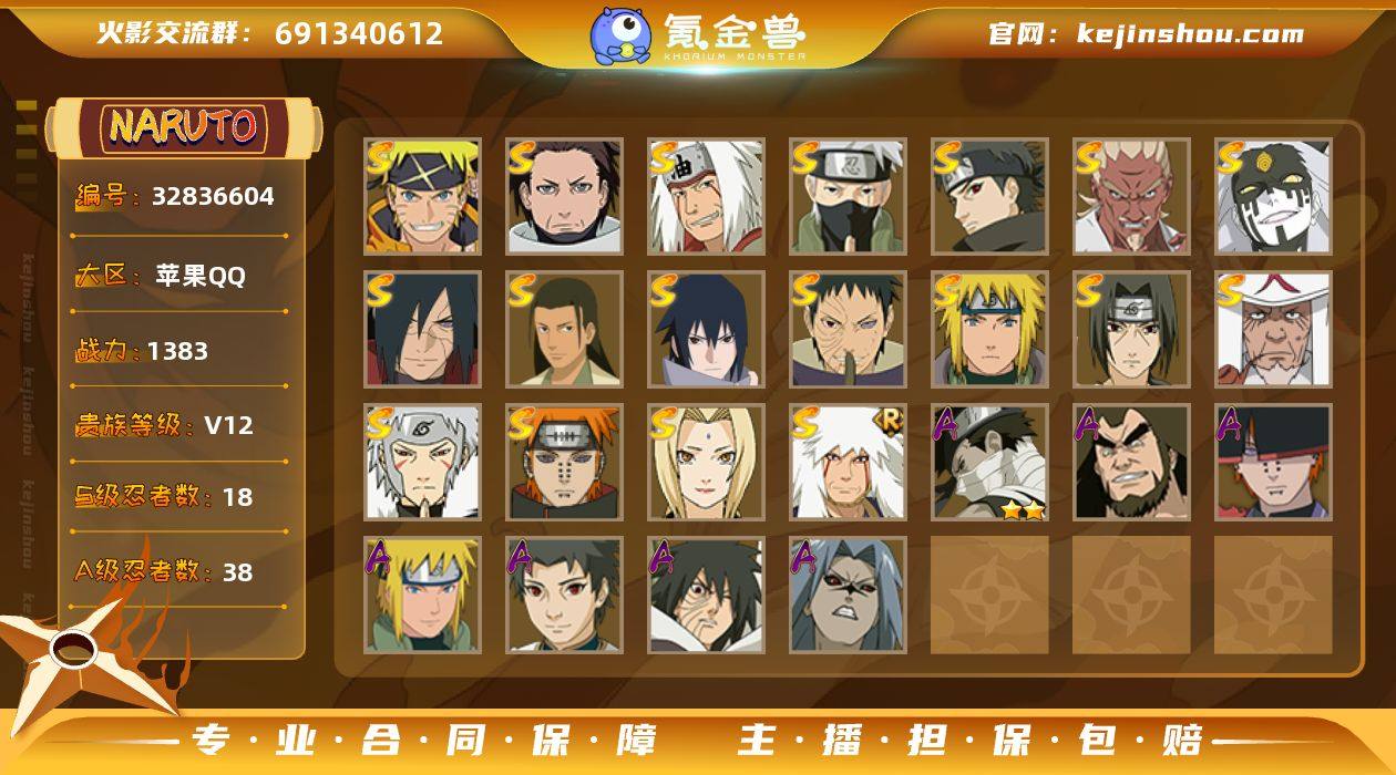 70912|苹果QQ 3626区 1383w战力 v12 S忍者数:18 A忍者数:38 时装17 余583点券苹果QQ 3626区 S忍者数:18 A忍者数:38 忍者:漩涡鸣人·宇智波佐助,烈斗「初代目风影」,自来也「传说中的三忍」,旗木卡卡西「须佐能乎」,宇智波止水「须佐能乎」,艾「忍界大战」,大筒木桃式,宇智波斑「秽土转生·解」,千手柱间「木叶创立」,宇智波佐助「永恒万花筒」,宇智波带土「忍界大战」,自来也「舞之豪杰」,千手扉间,宇智波鼬「须佐能乎」,佩恩「天道」,猿飞日斩,波风水门,纲手,旗木卡卡西「神威对决」,迈特凯「青春爆炸」,巳月「仙人模式」,机械鸣人「初始形态」,土台「忍界大战」,桃地再不斩「秽土转生」,神农「羁绊」,宇智波带土「漂泊浪客」,宇智波泉奈,蝎「绯流琥」,李洛克「忍界大战」,旗木卡卡西「幻之真容」,漩涡博人「桃式显现」,角都「秽土转生」,日向宁次「忍界大战」,我爱罗「新春限定」,不缘,长十郎「六代目水影」,卑留呼「火之意志继承者」,佩恩·六道「漂泊浪客」,艾「青年」,波风水门「青年」,宇智波止水「新春限定」,宇智波带土「暴怒」,千代「近松十人卫」,宇智波佐助「疾风传咒印」,秋道丁次「忍界大战」,大蛇丸「晓」,宇智波佐助「万花筒写轮眼」,飞段「死司凭血」,飞段,迪达...