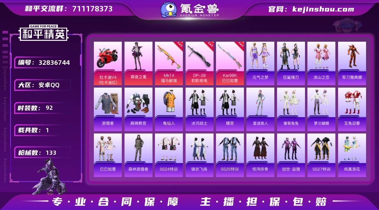 M1047327【可二次 地铁满天赋1载具-1粉装-3特效枪】安卓手Q-1载具-1粉装-3特效枪-92套装-133枪皮-2王牌印记-不朽星钻Ⅴ-35316热力值【1载具】杜卡迪 Panigale V4(杜卡迪红)【1粉装】角色-罪夜之冕【3特效枪】Mk14-福马献瑞[5级],DP-28-豹影疾电[5级],Kar98K-巳巳如意[5级]【5飞行器】马上有福飞行器,顶峰精英尾迹,破刃行动尾迹,梦幻火箭飞行器,异域银装飞行器【221其它衣服和枪皮】SS22特训,SS21特训,雏菊兔兔,霓虹街区,魅力单车,元气之梦,荣耀,角色-军刀雅典娜,冷焰舞者,SS25特训,老实芭蕉,蓝彩潮人,玉兔迎春,蓝色运动,惊鸿侠骨,空岛之星,玩偶服-喜羊羊,福马献瑞,纯真浪花,青翼流星,SS35特训,竞技名士,涂山之恋,SS31特训,海岛探路者,绯格组合,特殊使命,龟仙人,SS27特训,SS32特训,星途旅人,猎鹰,幻世战舞者,黄色名流,SS33特训,青年教官,黄色伏地魔,阳光火鸡,香桃花海,幻羽潜行,马上有钱,探宝勇士,潮流炫酷,薄荷星砂,黑色伏地魔,疯狂小兔子,元素星魂,麻辣教官,萝兰蝴蝶,柠萌假日,海盐绵绵冰,巳巳如意,大橘大利,灼焰舞者,SS23特训,春光漫游,SS34特训,龙魂突击队,战术大师,SS29特训,坚韧舞者,冰河战士,猛禽,SS24特训,龙的传人,SS28特训,角色-暖阳柴柴,牛气满满,狙击之神,白色伏地...