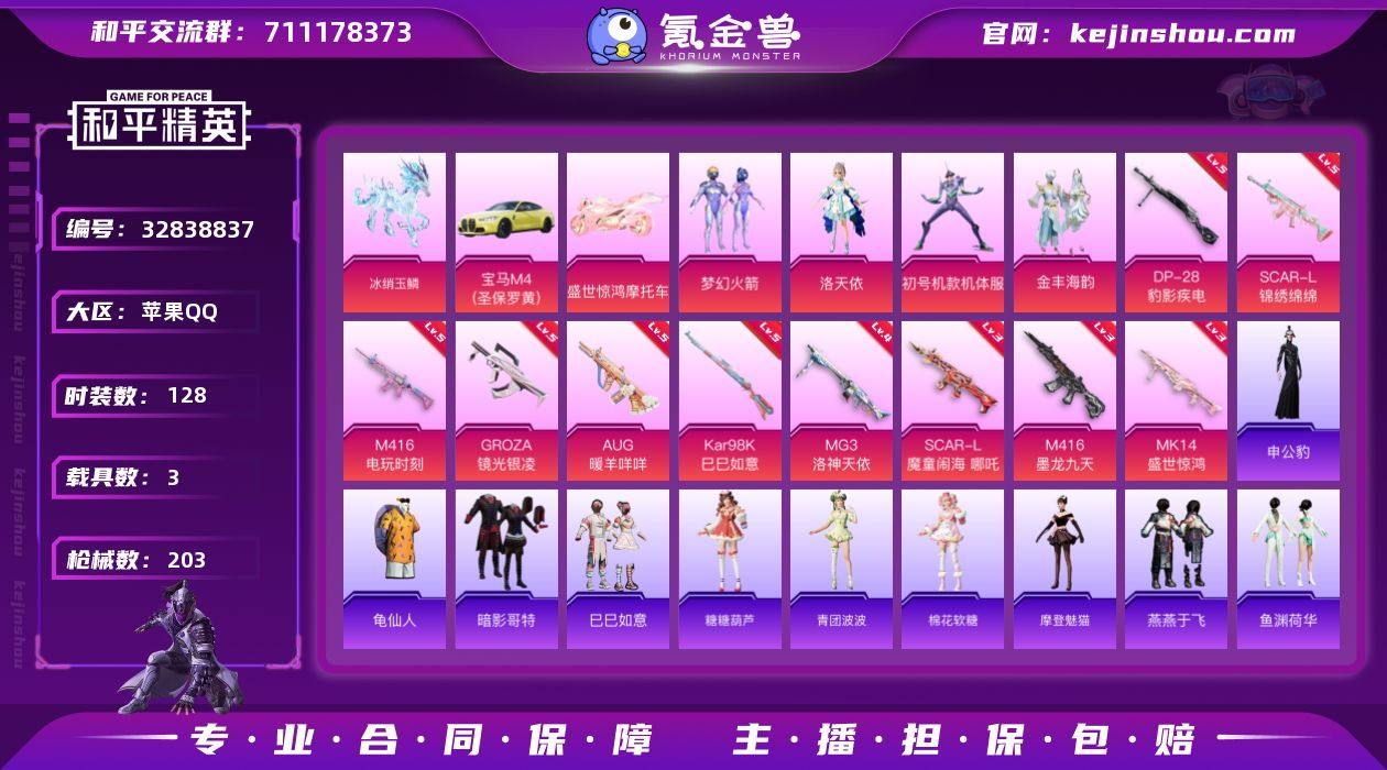 苹果【男神号 粉装-梦幻火箭,套装-暗影哥特,角色-洛天依,角色-初号机款机体服,M416-电玩时刻(五级),M416-墨龙九天(三级),宝马M4(圣保罗黄),盛世惊鸿摩托车,冰绡玉鳞】 手Q-4粉装-12特效枪-3载具-8粉色飞行器-62959热力值-13王牌印记-128套装-203枪皮 【热门品类】:粉装-梦幻火箭,套装-龟仙人,套装-暗影哥特 【粉色套装】:粉装-梦幻火箭,角色-洛天依,角色-初号机款机体服,粉装-金丰海韵 【粉色枪皮等级】:SCAR-L-锦绣绵绵(五级),SCAR-L-魔童闹海 哪吒(三级),M416-电玩时刻(五级),M416-墨龙九天(三级),GROZA-镜光银凌(五级),AUG-暖羊咩咩(五级),Kar98K-巳巳如意(五级),Mk14-盛世惊鸿(三级),Mk14-福马献瑞(五级),AA12-G-萌骑幻想(二级),DP-28-豹影疾电(五级),MG3-洛神天依(四级) 【粉色载具】:宝马M4(圣保罗黄),盛世惊鸿摩托车,冰绡玉鳞 【粉色枪皮】:SCAR-L-锦绣绵绵,SCAR-L-魔童闹海 哪吒,M416-电玩时刻,M416-墨龙九天,GROZA-镜光银凌,AUG-暖羊咩咩,Kar98K-巳巳如意,Mk14-盛世惊鸿,Mk14-福马献瑞,AA12-G-萌骑幻想,DP-28-豹影疾电,MG3-洛神天依 【粉色飞行器】:炫彩糖果飞行器,梦幻火箭飞行器,拂晓神骑飞行器,繁龙极客飞行器...