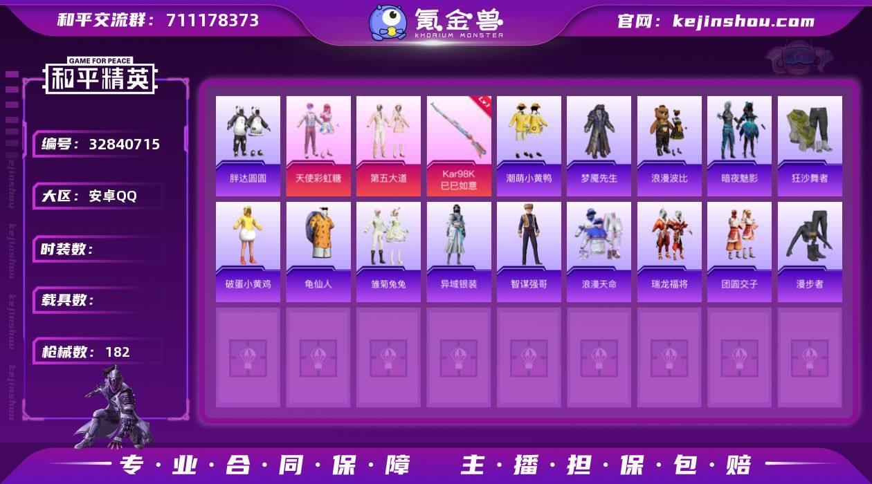 XS11504有二次安卓手Q-2粉装-3特效枪-167套装-182枪皮-11王牌印记-不朽星钻Ⅴ-53540热力值【2粉装】天使彩虹糖,第五大道【3特效枪】Mk14-福马献瑞[4级],DP-28-豹影疾电[5级],Kar98K-巳巳如意[5级]【5稀有】浪漫天命,胖达圆圆,狂沙舞者,AKM-百万伏特,S686-浪客战士【8飞行器】马上有福飞行器,炫彩糖果飞行器,异域银装飞行器,红色滑翔尾迹,顶峰精英尾迹,狂鲨锋刃飞行器,鸡智如我飞行器,登顶巅峰飞行器【3头盔】百万伏特头盔,梦幻火箭头盔,深海小丑鱼头盔【2背包】神秘黑猫背包,甜蜜誓约背包【339其它衣服和枪皮】角色-暖阳柴柴,探宝勇士,SS14特训,龙的传人,SS13特训,SS21特训,春日漫步,轻风白浪,森林游猎者,炫蓝之夏,绯格组合,竞技达人朋克,萝兰蝴蝶,鹤鸣,福马献瑞,绮丽涂鸦,漫游都市,棉花软糖,粉黛兰香,马上来财,青年教官,萌黄之夏,云魄琉璃,绒宝小鹅,萌趣绒叽,甜酷狙击,特训学院,SS22特训,霓虹街区,虎虎生威吉莉,SS18特训,瑞龙福将,白色伏地魔,深蓝色名流,鱼渊荷华,橘黑制服,幻世战舞者,超能元气,牛气满满,SS25特训,长空猛禽,猛禽,夏日音浪,甜心亚梦,SS33特训,SS15特训,萌趣颜团子,田园牧歌,炫彩糖果,潮萌小黄鸭,香桃花海,冷焰舞者,团圆交子,薄荷星砂,SS19特训,海岛探路者,黑色...