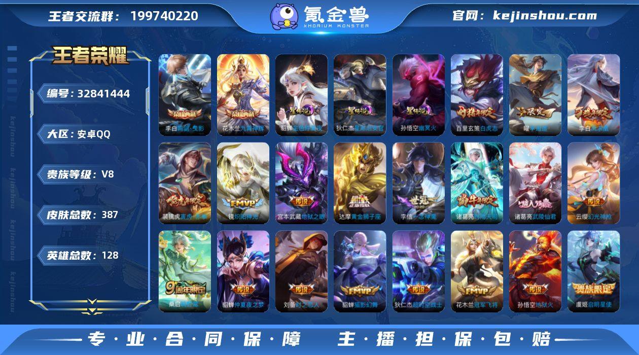【WZ181893】安卓Q-V8-至尊星耀IV段位-128英雄-387皮肤-2典藏皮肤-22传说-112史诗【英雄全皮】:孙权全皮,鬼谷子全皮,盾山全皮,敖隐全皮,空空儿全皮【荣耀典藏】:李白鸣剑曳影,花木兰九霄神辉【传说皮肤】:阿轲罗刹妄海,关羽神骥镇沧海,云缨幻光神枪,桑启鸣野蒿,裴擒虎寅虎赤拳,曜李逍遥 ,诸葛亮时雨天司,铠绛天战甲,镜炽阳神光,虞姬启明星使,李信一念神魔,刘备时之恋人,貂蝉猫影幻舞,达摩黄金狮子座,百里玄策白虎志,花木兰冠军飞将,诸葛亮武陵仙君,貂蝉仲夏夜之梦,李白凤求凰,宫本武藏地狱之眼,孙悟空地狱火,狄仁杰超时空战士【限定皮肤】:白起狰,暃埋骨钱,蔡文姬夏日便利店,大乔绒语心约,虞姬夏日便利店,姜子牙天穹之誓,狄仁杰阴阳师,虞姬凯尔特女王,赵云皇家上将,赵云引擎之心,墨子神迹守卫,妲己时之奇旅,嬴政优雅恋人,嬴政白昼王子,孙尚香蔷薇恋人,鲁班七号狮舞东方,庄周云端筑梦师,高渐离玩趣恶龙,阿轲迷踪丽影,钟无艳超时空战士,扁鹊炼金王,芈月重明,吕布猎兽之王,周瑜赤莲之焰,元歌云间偶戏,元歌无心,夏侯惇朔风刀,甄姬游园惊梦,甄姬落雪兰心,曹操烛龙,曹操天狼征服者,典韦穷奇,典韦蓝屏警告,狄仁杰魔...