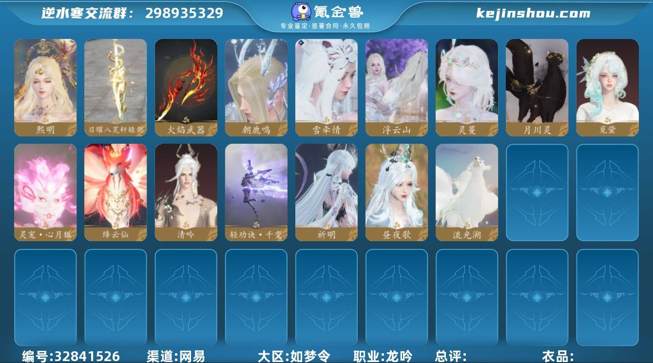 已用天赏石:30 天霓染数量:3 【龙吟】 【男】 【6级】 【把酒临风】 【互通】 副本外观1 天赏外观13 天赏祥瑞3 天赏灵宠1 副本外观:白夜拂雪; 天赏外观:朝鹿鸣,铆月寒,觅萤,清吟,昼夜歌,祈明,熙明,灵蔓,浮云山,雪牵情,火焰武器,机械武器,轻功诀千变; 天赏祥瑞:绛云仙,月川灵,流光溯; 天赏灵宠:灵宠·心月狐;