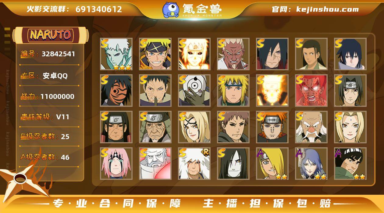 实名: 可修改 贵族等级: V11 S忍数: 25 A忍数: 46 战力值(万): 1100 S级忍者: 千手柱间「秽土转生」,罗砂「四代目风影」,纲手「百豪」,猿飞日斩「秽土转生」,佩恩「天道」,大蛇丸,波风水门,纲手,宇智波鼬 「须佐能乎」,迈特凯「死门」,大野木 「忍界大战」,宇智波带土 「忍界大战」,自来也 「舞之豪杰」,宇智波斑「白面具」,漩涡鸣人 「九喇嘛连结」,大筒木金式「博人传」,春野樱 「忍界大战」,神秘面具男 「红夜之刃」,宇智波佐助「永恒万花筒」,千手柱间·木叶创立,宇智波斑「秽土转生·解」,艾「忍界大战」,波风水门「九喇嘛连结」,漩涡鸣人·宇智波佐助,宇智波带土「十尾人柱力」
