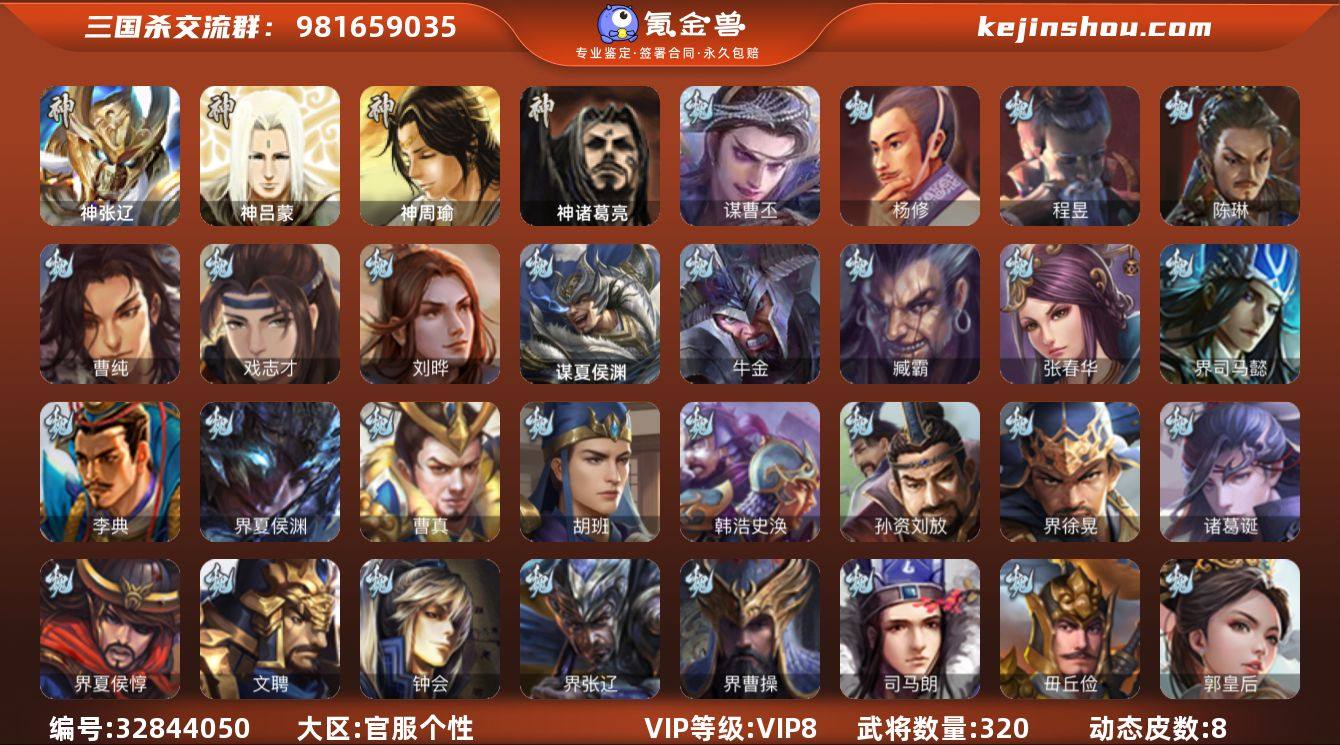 【14789880】官阶:骠骑将军;VIP等级:VIP8;史诗武将数量:20;动态皮肤数量:8;武将总数:320;史诗宝珠数量:0;将魂数量:4679;神将:2;魏国史诗武将:3;蜀国史诗武将:5;吴国史诗武将:2;群史诗武将:5