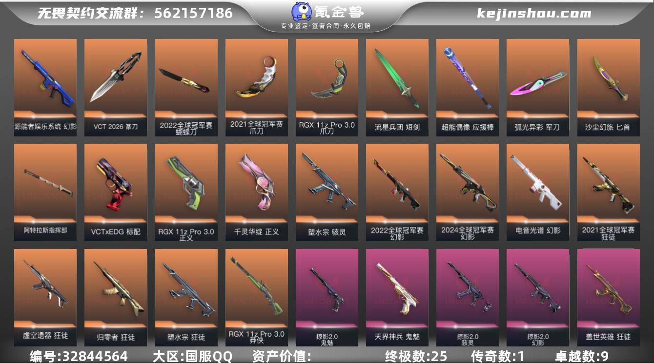 【6.1w库存21冠军套.22冠军套.24冠军幻影.VCT26纂刀.镭切.剥皮小刀.显卡爪刀.电工钳.塑水宗.虚空.紫金.猴子】YXy5900【无二次】【因赛季更新游戏段付以上号为准!】 【套装】:2022全球冠军赛套装,2021全球冠军赛套装,VCT 2026 赛季套装,RGX 11z Pro//3.0套装,VCTxEDG 队伍套装,掠影//2.0套装 【英雄】:幻棱,炼狱,维斯,暮蝶,钛狐,壹决,铁臂,捷风,雷兹,幽影,不死鸟,贤者,猎枭,蝰蛇,零,芮娜,奇乐,尚勃勒,霓虹,斯凯,夜露,星礈,K/O,海神,盖可,黑梦,钢锁 【近战武器】:近战武器-2022全球冠军赛 蝴蝶刀,近战武器-2021全球冠军赛 爪刀,近战武器-VCT 2026 篆刀,近战武器-魔术火花,近战武器-影钩,近战武器-剥皮小刀,近战武器-RGX 11z Pro//3.0 爪刀,近战武器-镭切,近战武器-流星兵团 短剑,近战武器-超能偶像 应援棒,近战武器-弧光异彩 军刀,近战武器-沙尘幻旅 匕首,近战武器-阿特拉斯指挥部 甩棍,近战武器-魔术火花 【狂徒】:狂徒-2021全球冠军赛,狂徒-归零者,狂徒-塑水宗,狂徒-虚空遗器,狂徒-盖世英雄,狂徒-紫阙金琅,狂徒-离子武器//2.0,狂徒-超能偶像,狂徒-弧光异彩,狂徒-流星兵团,狂徒-沙尘幻旅 【幻影】:幻影-2022全球冠...