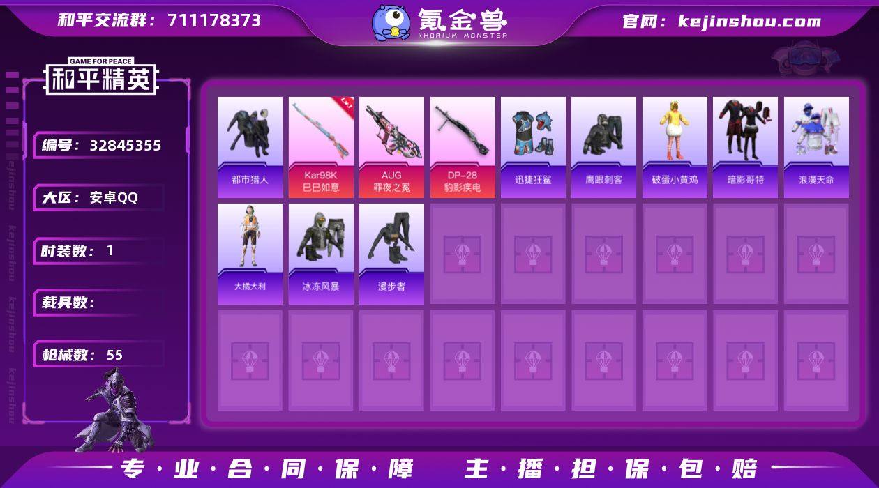 ZMH1374【1粉-6特 都市猎人 浪漫天命 暗影哥特 AUG-罪夜之冕[5级]】安卓手Q-1粉装-6特效枪-34套装-55枪皮-1王牌印记-不朽星钻Ⅴ-15175热力值【1粉装】角色-罪夜之冕【6特效枪】UMP45-萌骑冒险[2级],DP-28-豹影疾电[4级],Kar98K-巳巳如意[2级],AKS-74U-森灵之息[5级],Mk14-福马献瑞[5级],AUG-罪夜之冕[5级]【3稀有】暗影哥特,浪漫天命,都市猎人【3飞行器】沙丘之主天马,云朵驼驼飞行器,马上有福飞行器【1头盔】幻影战神头盔【1背包】幻影战神背包【79其它衣服和枪皮】角色-月烬之祷,雪国风尚,SS37特训,青翼流星,红釉青花,大橘大利,角色-霜刃之御,角色-枫露凝珀,漫步者,福马献瑞,画境星梦,冰冻风暴,破蛋小黄鸡,黄色运动,狙击之神,老实芭蕉,鹰眼刺客,薄荷星砂,迅捷狂鲨,阳光菠萝,角色-绯色魅影,书海巡游,雨过天青,马上有钱,特战装甲,战术大师,潮流炫酷,SS36特训,元气之梦,琴音绮想,AUG-甜蜜菠萝,MP5K-画境星梦,UZI-梦海之灵,AA12-G-画境星梦,爆炸猎弓-精灵之光,P90-精灵之光,P90-紫矿核心,SCAR-L-炫彩节奏,AKM-橘猫汽水,平底锅-画境星梦,AC-VAL-梦海之灵,M762-天降萌叽,M1加兰德-画境星梦,MG3-梦海之灵,SKS-迅猛狂鲨,燃烧瓶-福马献瑞,SKS-炫彩节奏,SPAS-12-罪夜之冕,AA12-G-橘猫汽...