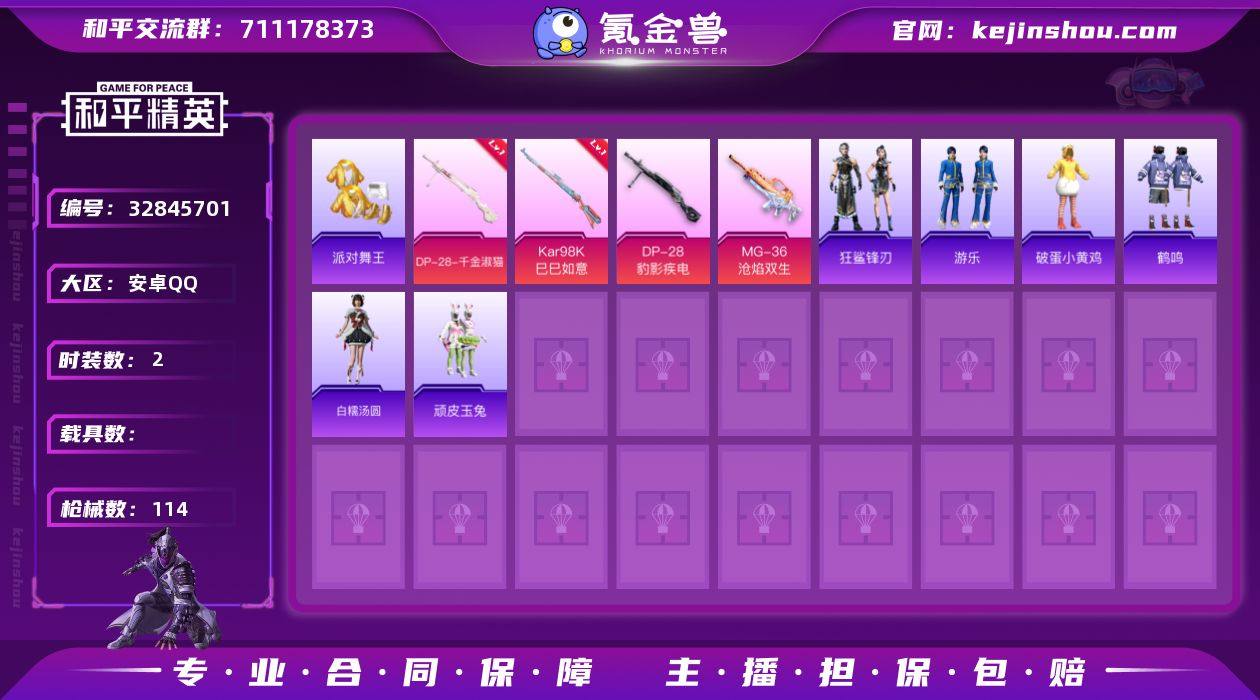 ZMH1371【可二次 2粉装-6特效枪 派对舞王】安卓手Q-2粉装-6特效枪-69套装-114枪皮-4王牌印记-不朽星钻Ⅴ-30496热力值【2粉装】角色-异瞳寒姬,角色-虎痴许褚【6特效枪】Kar98K-巳巳如意[5级],MG-36-沧焰双生[5级],DP-28-千金淑猫[3级],DP-28-豹影疾电[5级],Mk14-福马献瑞[5级],ACE32-萌骑漫游[2级]【2稀有】派对舞王,AKM-缤纷海域【10飞行器】鸡智如我飞行器,狂鲨锋刃飞行器,异域银装飞行器,云朵驼驼飞行器,炫彩糖果飞行器,提桶跑路飞行器,粉色滑翔尾迹,登顶巅峰飞行器,马上有福飞行器,极意拳锋飞行器【173其它衣服和枪皮】秘语星愿,午间小调,画境星梦,战术大师,阳光菠萝,破蛋小黄鸡,白熊同盟,琴音绮想,柠萌假日,雨过天青,角色-绯色魅影,角色-无面战甲,雪国风尚,书海巡游,猛禽,朱霞炽焰,错位像素,青翼流星,炫彩糖果,SS36特训,狙击之神,福马献瑞,阳光火鸡,角色-霜纹水星,角色-申公豹,长空猛禽,迅捷龙虾,完美偶像,元气之梦,青涩时光,绿洲幽影,旭日情侣,竞技名士,香桃花海,角色-紫俏灵猫,红釉青花,SS35特训,超能元气,黑色伏地魔,海岛探路者,王牌教练,玩偶服-卖崽青蛙,游乐,白糯汤圆,角色-霜刃之御,街头潮人,魅力单车,夜幕侵蚀,SS34特训,玩偶服-喜羊羊,玲珑侠影,鹤鸣,顽皮玉兔,马上...