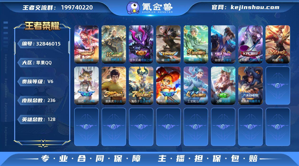 苹果Q 可二次 历史万战金标狄仁杰 后羿 元流之子 艾琳 1典藏5传说128英雄236皮肤 拾光映像 神树通天 鸣野蒿 云鹰飞将 超时空战士男 地狱之眼 万灵启世 巫礼祀神 涂山容容 至尊宝 飞衡 天狼绘梦者 魔法小厨娘 时之彼端 神迹守卫钟馗 狮舞东方 星空之诺 银河之约 暗影游猎 原初追逐者 黎明之约 死神来了 梁祝 电玩小子 电玩爆裂旋风 原初探秘者 李小龙 水晶猎龙者 暗隐猎兽者 猫狗日记男 猫狗日记女 金属风暴 特工魅影 曙光守护者 特工战影 女武神 黄金分割率 玩趣恶龙 舞动绿茵 逐浪之夏 心灵战警 修罗 魅语 千年之狐 紫霞仙子 心灵骇客 圣诞恋歌 幽灵船长 乘风破浪 圣诞狂欢 末日机甲男 星夜王子 街头霸王 缤纷独角兽 鬼剑武藏 德古拉伯爵 赤莲之焰 冰雪圆舞曲 顽趣梦奇 王者荣耀账号