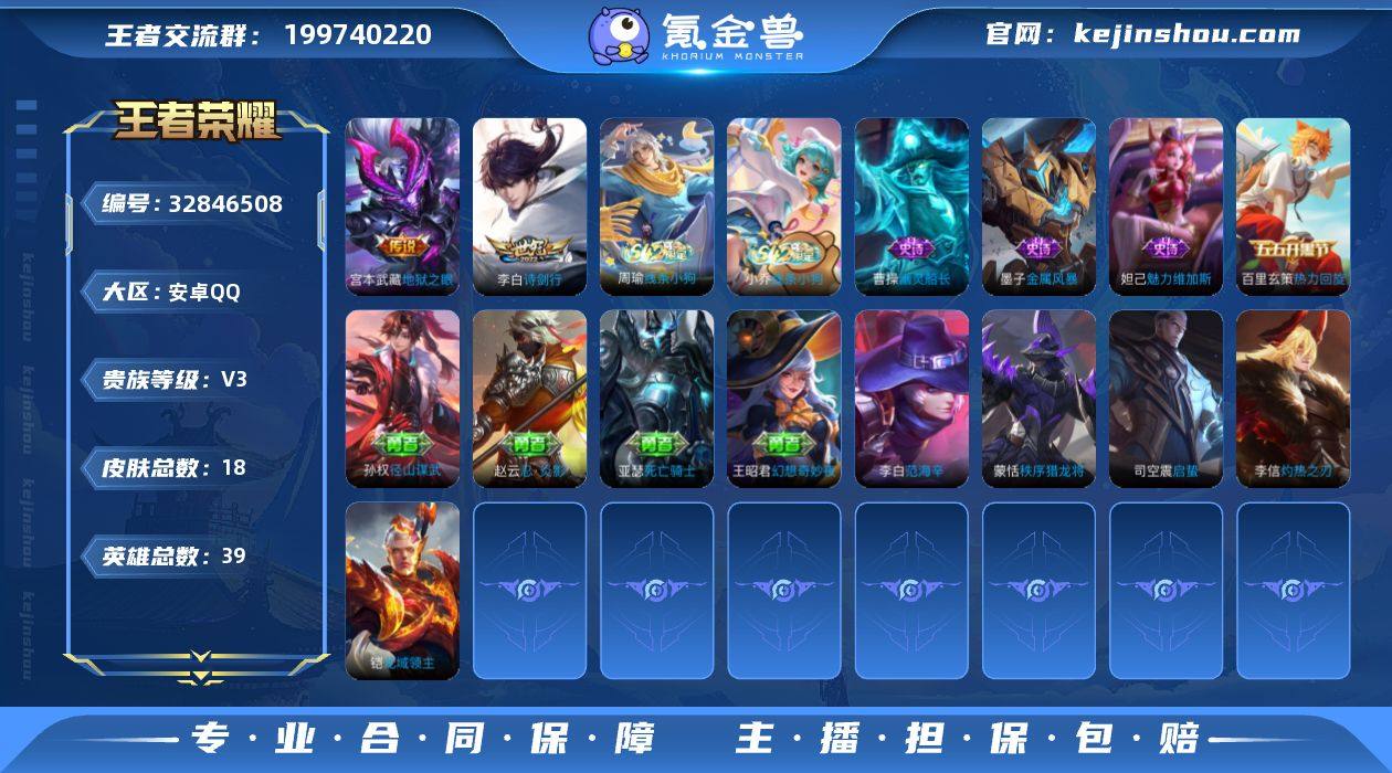 【XY1095】贵族3/皮肤18/传说2/史诗5/英雄39/孙权全皮/诗剑行/地狱之眼/线条小狗-周瑜/线条小狗-小乔/热力回旋/幽灵船长/金属风暴/魅力维加斯/影百相守梦/径山谋武/幻想奇妙夜/死亡骑士/忍·炎影/启蛰/秩序猎龙将/灼热之刃/龙域领主/范海辛