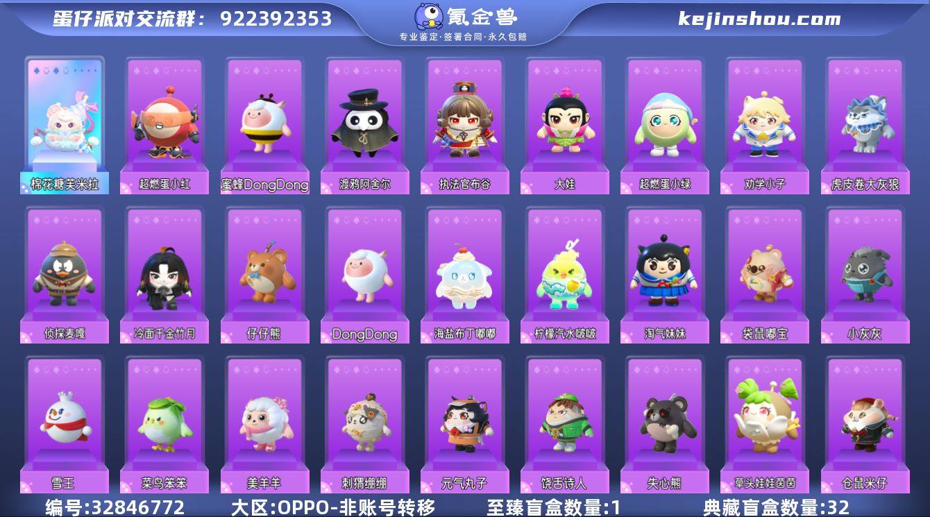 【1至臻32典藏9至臻配饰2只羊dongdong蜜蜂dongdong棉花糖芙米拉热门紫皮淘气妹妹元气丸子精灵法师月歌小灰灰雪王菜鸟笨笨淘气丸子仔仔熊有dongdong背景漂亮配饰暮烟蝴蝶dongdong眼镜漂亮背饰霜糖风车摇目月相食垂耳兔背包稀有舞蹈动作表情多有多个决战技惊魂夜玩家有惊魂夜皮肤】账号类型: 手机账号 段位: 三阶鸡蛋 热门装扮: DongDong,仔仔熊,淘气丸子,虎皮卷大灰狼,蜜蜂DongDong,饶舌诗人,失心熊,仓鼠米仔,刺猬绷绷,元气丸子,小灰灰,美羊羊,袋鼠嘟宝,菜鸟笨笨,雪王,街头一霸骐哥,沉眠的螺壶,狼执事柯尔特,小浮冰霜霜,草头娃娃茵茵,精灵法师月歌,淘气妹妹,执法官布谷,渡鸦阿舍尔,大娃,侦探麦嘎,劝学小子,超燃蛋小绿,超燃蛋小红,海盐布丁嘟嘟,柠檬汽水啵啵,棉花糖芙米拉,冷面千金竹月哈密瓜,水蜜桃音浪星梦,小天使