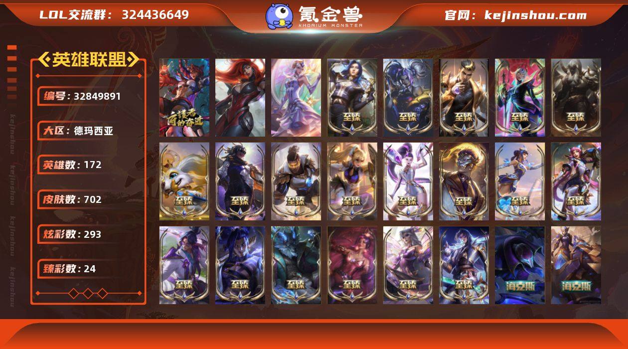 t38839【德玛西亚】702皮肤 293炫彩 24臻彩 27神话/83限定/74传说/172英雄 账号等级:427【重要头像】觅心之翼奎因 小猎 星守金克丝炫彩 北极星神黛安娜炫彩 不错哦 【重要皮肤】双城之战2指挥官凯特琳至臻 魔域梦魇泽丽至臻 T1杰斯至臻 至高天凯尔至臻 心之钢永恩至臻 花仙使者卡特琳娜至臻 剪纸仙灵希维尔至臻 北极星使者沃里克至臻 至高天奎桑提至臻 灵魂莲华易至臻 幻灵战斗猫金克丝至臻 青花瓷拉克丝至臻 战斗学院蕾欧娜至臻 未来战士卢锡安至臻 真实伤害赛娜至臻 焰执事布兰德至臻 KDA二代卡莎至臻 绒毛菲兹至臻 腥红之月亚托克斯至臻 殿堂传奇乐芙兰 海克斯科技瑟庄妮 海克斯科技魔腾 水晶掠夺者卡兹克 胜利剑圣易 胜利女神娑娜 胜利之王泰达米尔 胜利巨口克格莫 女帝格温 玉剑传说舞龙卫 灵能特工易 天龙之子斯莫德 神龙烈焰金克丝 春晖神女拉克丝 玉净夜叉凯特琳 张辽文远 龙马烈焰波比 胜利之树茂凯 胜利机器人布里茨 胜利女神奥莉安娜 胜利枪神格雷福斯 怦然心动凯特琳 意乱情迷蔚 水晶玫瑰阿克尚 甜心宝贝娑娜 穿心之剑菲奥娜 觅心游侠卢锡安 觅心萝莉金克丝 幽梦玫瑰辛德拉 幽梦玫瑰泰隆 水晶玫瑰斯维因...