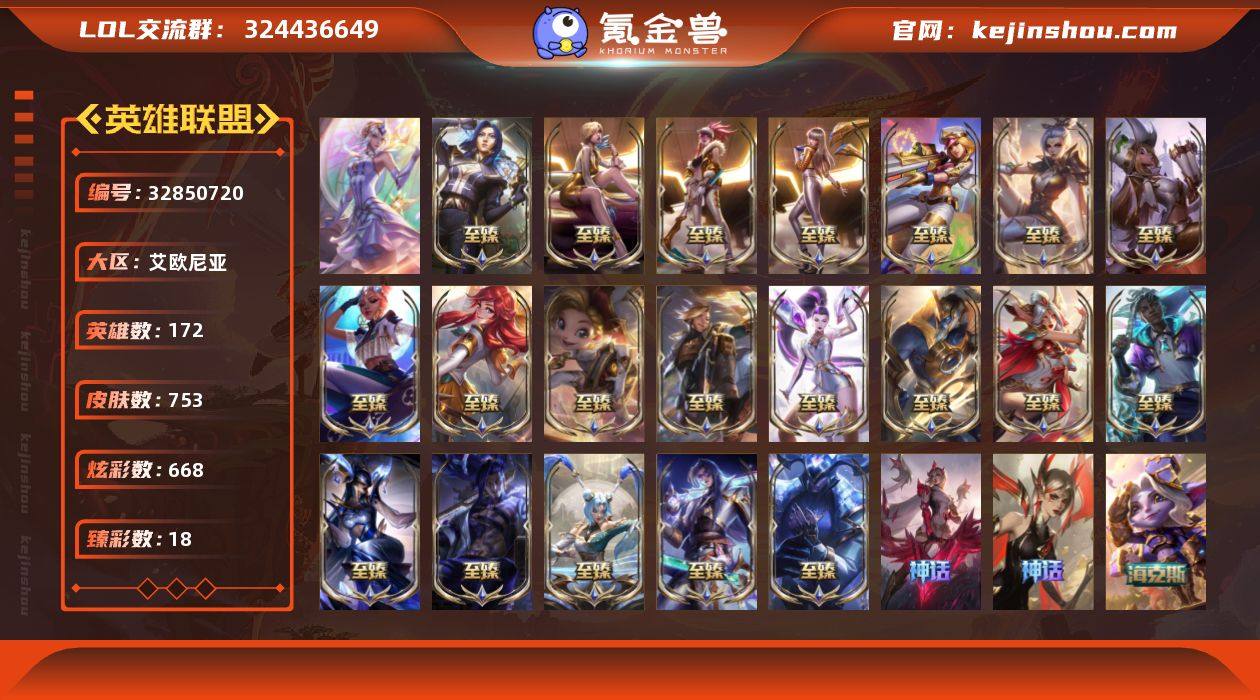 【LDC1367】172英雄/753皮肤/1终极/33神话/105限定/18臻彩/668炫彩/80传说/144史诗/未定级/10周年 安妮/殿堂传奇 乐芙兰/水晶圣骑 艾希/殿堂传奇 薇恩/水晶巫灵 泽拉斯/灰烬骑士 派克/至臻 魅惑女巫 厄运小姐/至臻 K/DA 伊芙琳/至臻 玉剑传说 琴仙子/至臻 电玩女神 凯特琳/至臻 双城之战2 指挥官 凯特琳/至臻 飞升战神 潘森/至臻 灵能特工 伊泽瑞尔/至臻 K/DA 阿卡丽/至臻 玉剑传说 武剑仙/至臻 战斗学院 拉克丝/至臻 青花瓷 丽桑卓/至臻 奥术师 佐伊/至臻永恒星灵佐伊/至臻 K/DA 卡莎/至臻 K/DA ALL OUT卡莎/至臻 墨之影武者 亚索/至臻 灵魂莲华 劫/至臻 星之守护者 艾克/至臻 真实伤害 奇亚娜/至臻 DRX 亚托克斯/至臻 神凰行者 烈羽焰凰 霞/至臻 心之钢 永恩/至臻北极星神梅尔/海克斯 希维尔/海克斯 崔丝塔娜/海克斯 雷克顿/摄魂 薇恩/天龙之子 卡莎 飞龙乘云/无畏骑士 瑟庄妮 赤子初心/墨之影武者 亚索 金墨耀影/征服者 韦鲁斯 炫金/霸天战士 雷恩加尔 星啸天火/玉剑传说 无影 竞星/西部魔影 卢锡安 贝利尔之怠/源计划: 联合 艾希 红莲之弓/星之守护者 金克丝 黑洞/破败军团 厄运小姐 灵岛征伐使/可爱可爱粉红红 布里茨/殿堂传奇 乐芙兰 登神/魔女 阿卡丽 虚荣/净雪之月 莫...