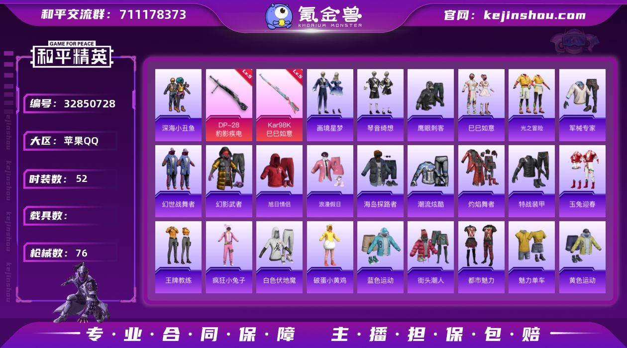 【hp381】苹果 手Q-0粉装-3特效枪-0载具-2粉色飞行器-17228热力值-2王牌印记-52套装-76枪皮 【热门品类】:套装-深海小丑鱼 【粉色枪皮等级】:ACE32-萌骑漫游(一级),Kar98K-巳巳如意(五级),DP-28-豹影疾电(五级) 【粉色枪皮】:ACE32-萌骑漫游,Kar98K-巳巳如意,DP-28-豹影疾电 【粉色飞行器】:炫彩糖果飞行器,极意拳锋飞行器 【粉色降落伞】:异瞳寒姬降落伞,炫彩糖果降落伞 【稀有套装】:套装-巳巳如意,套装-雪国风尚,套装-炫彩糖果,套装-画境星梦,套装-琴音绮想,套装-红釉青花 【稀有枪皮】:AUG-冰晶雪宝,AKM-破晓战魂,SCAR-L-夜灯,SCAR-L-炫彩节奏,SCAR-L-玉兔迎春,M416-红色方程式,M416-蓝色火焰,M762-彩虹符号,M762-登顶巅峰,AC-VAL-天降萌叽,ACE32-画境星梦,UMP45-夜灯,汤姆逊-天降萌叽,汤姆逊-像素花束,MP5K-画境星梦,P90-巳巳如意,Mini14-耀粉歌者,M1加兰德-画境星梦,S686-生命誓言,S12K-夜灯,AA12-G-画境星梦,M249-破晓战魂,DP-28-彩虹符号,MG3-幻世战舞者,爆炸猎弓-喜羊羊与灰太狼,平底锅-画境星梦,破片手榴弹-巳巳如意 【其他套装】:套装-光之冒险,套装-军械专家,套装-幻世战舞者,套装-幻影武者,套装-旭日情侣,套...